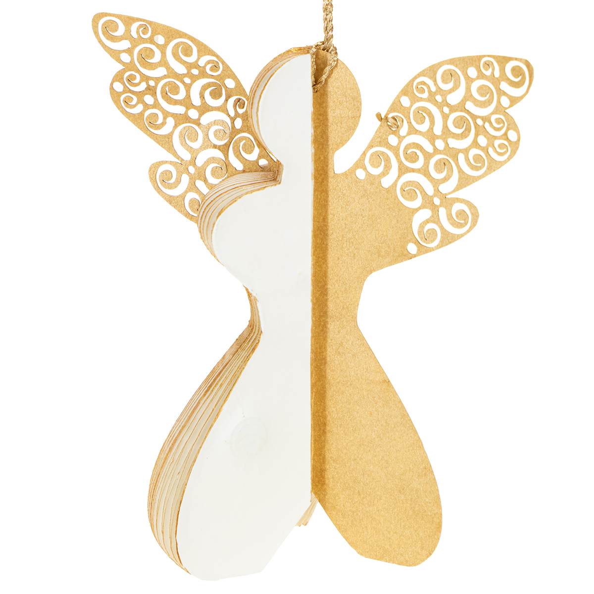 Nom du produit : Décorations d'arbre de Noël en papier, pendentifs anges, blanc et or, 12 cm, lot de 4