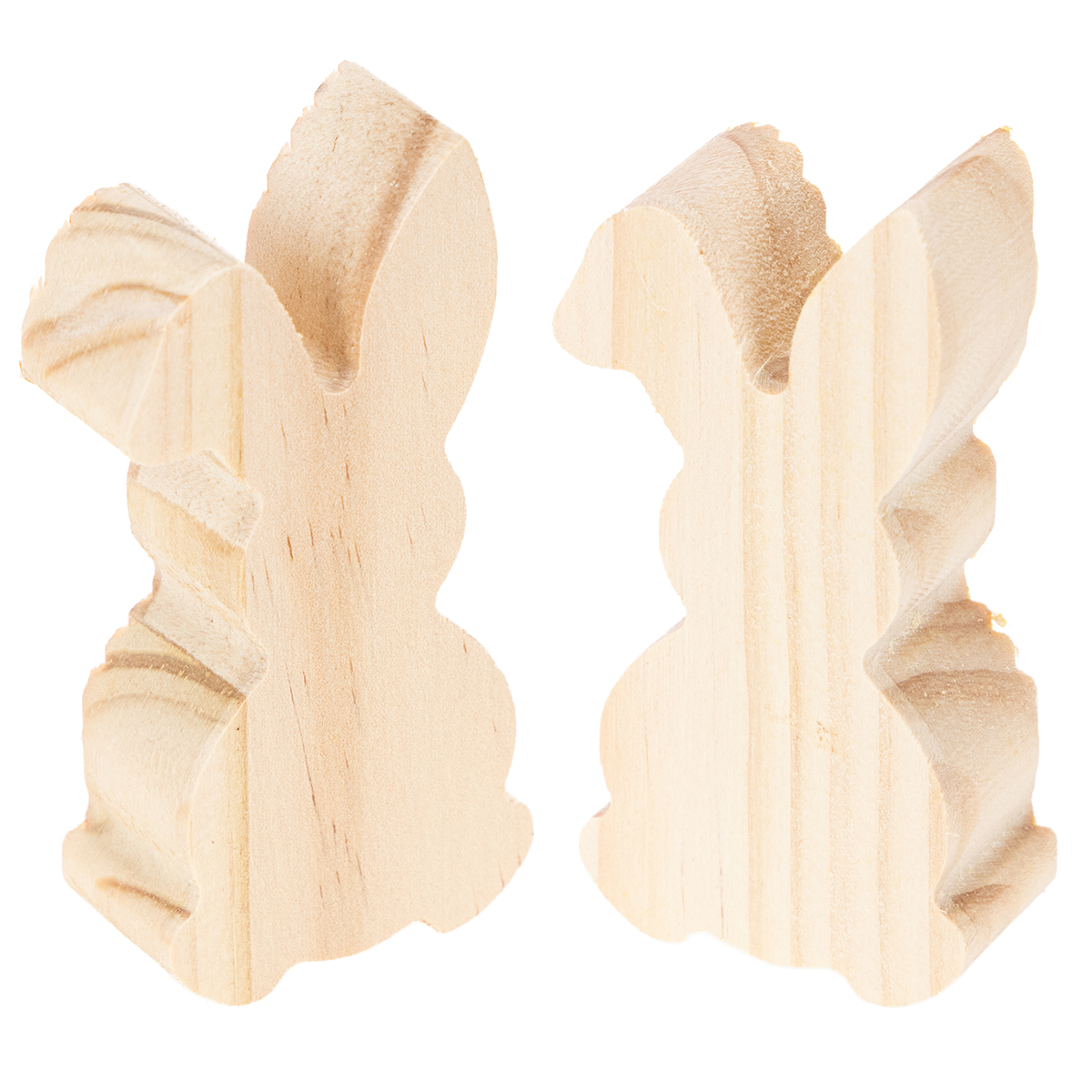 Vous obtenez six lapins en bois assortis, trois en jaune et trois en orange.
