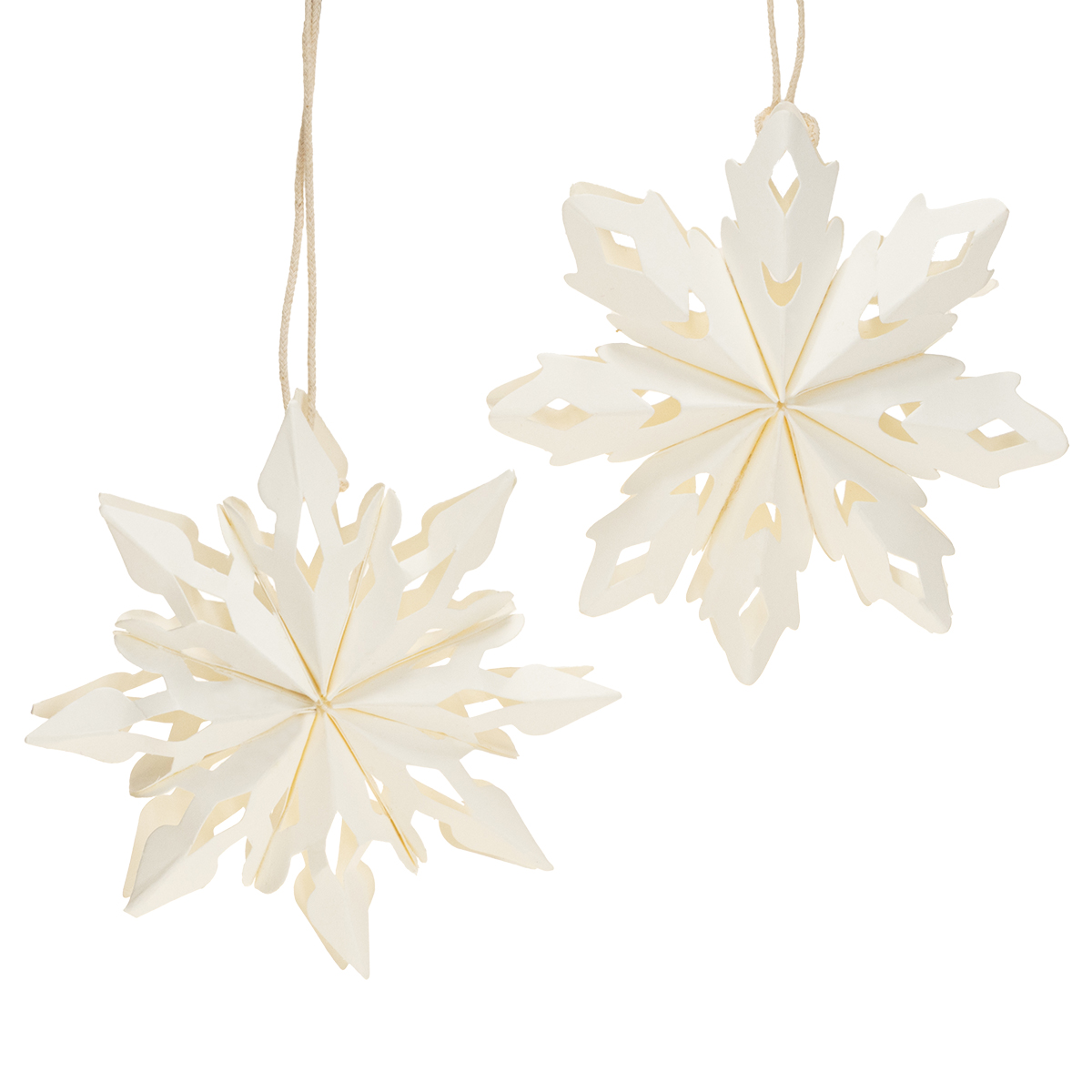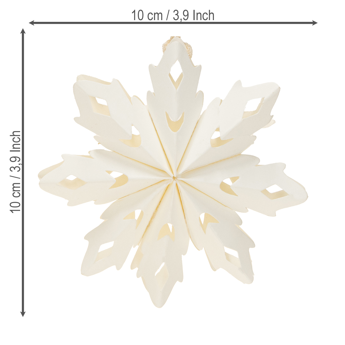Nom du produit : Décorations en papier flocons de neige à suspendre, blanches, 10 cm, lot de 4