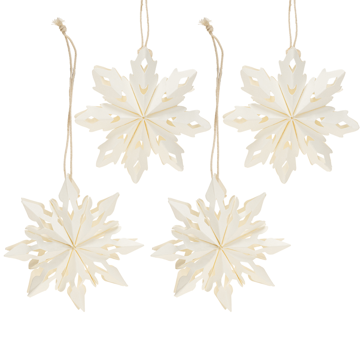 Décorations en papier flocons de neige à suspendre, blanches, 10 cm, lot de 4