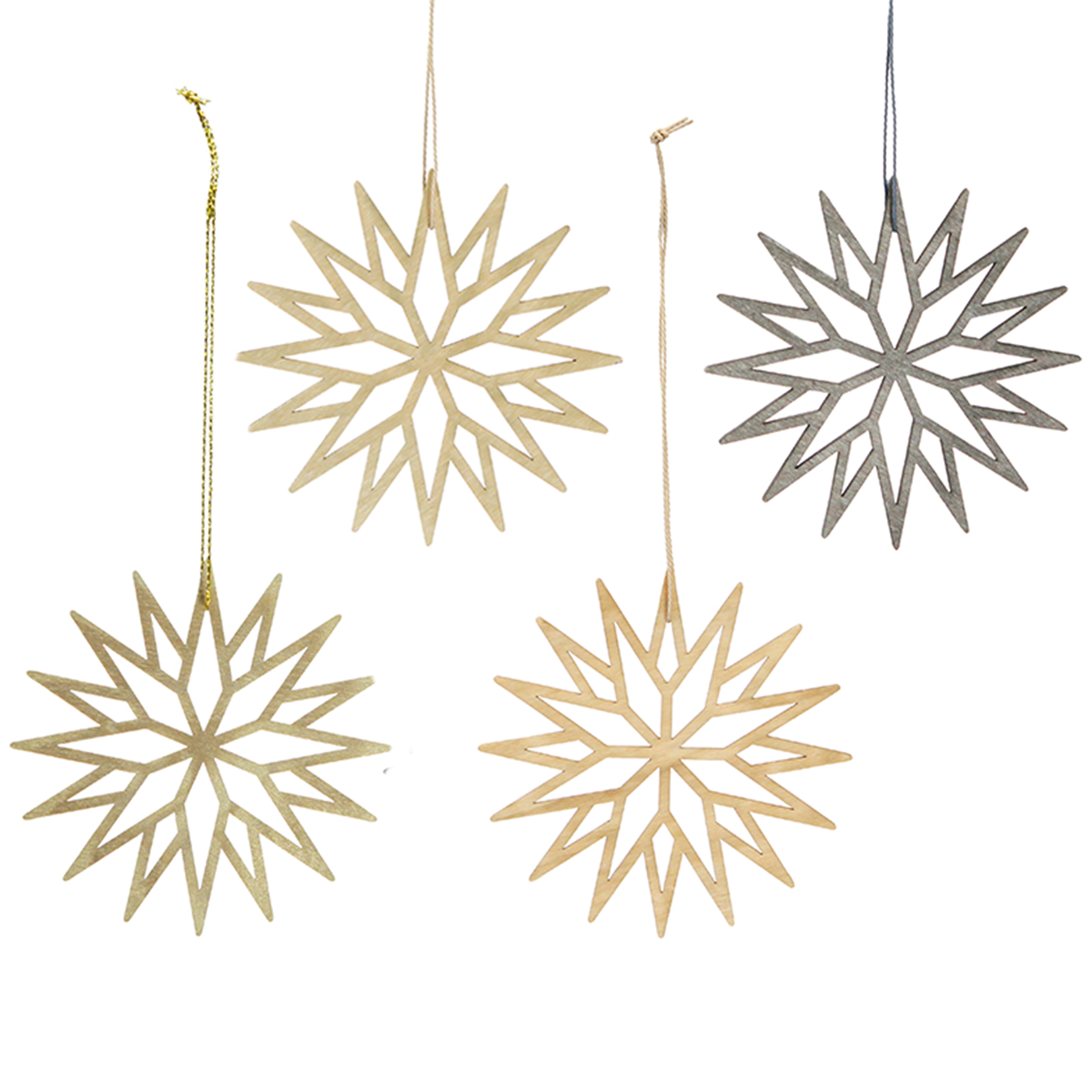 Apportez la beauté de la nature directement dans votre maison avec nos décorations de sapin de Noël en bois en quatre couleurs. Ces superbes flocons de neige décoratifs de 10 cm sont fabriqués en bois de haute qualité et sont parfaits pour une décoration de Noël élégante. Avec leur palette de couleurs intéressante entre naturel, marron et vert clair ainsi que leur design scandinave intemporel, ils mettent de superbes accents dans votre espace de vie pendant la période des fêtes.