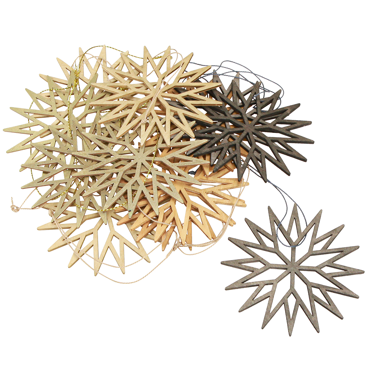 Décorations pour arbres de Noël décoration en bois flocon de neige marron 10cm 12 pcs