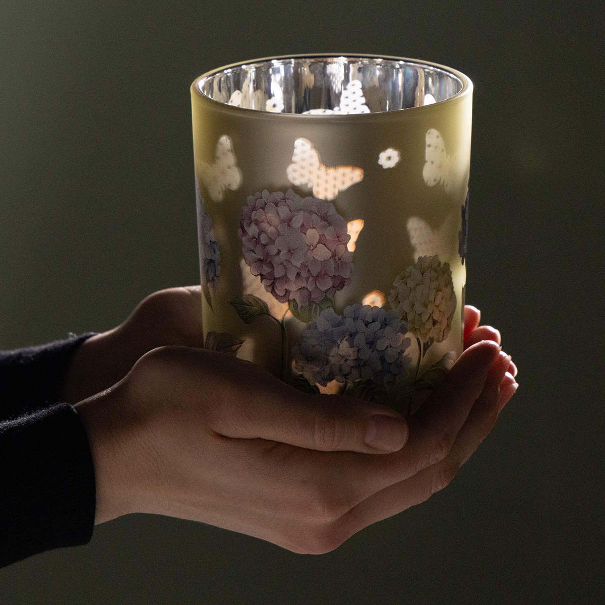 - Lanterne florale ornée d'un délicat motif d'hortensia