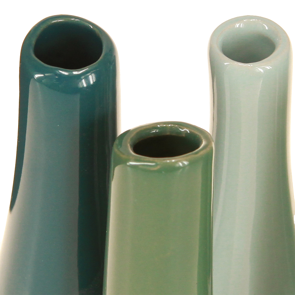 Les teintes vertes de ces vases design s'harmonisent à merveille avec des matériaux naturels comme le bois ou une décoration de style scandinave. Posez-les sur le plan de travail de votre cuisine pour une touche charmante ou décorez une étagère de salle de bain pour une ambiance fraîche et dynamique. Cet ensemble constitue également un élément décoratif remarquable sur une table de chevet ou un bureau – idéal pour ceux qui apprécient les détails raffinés.