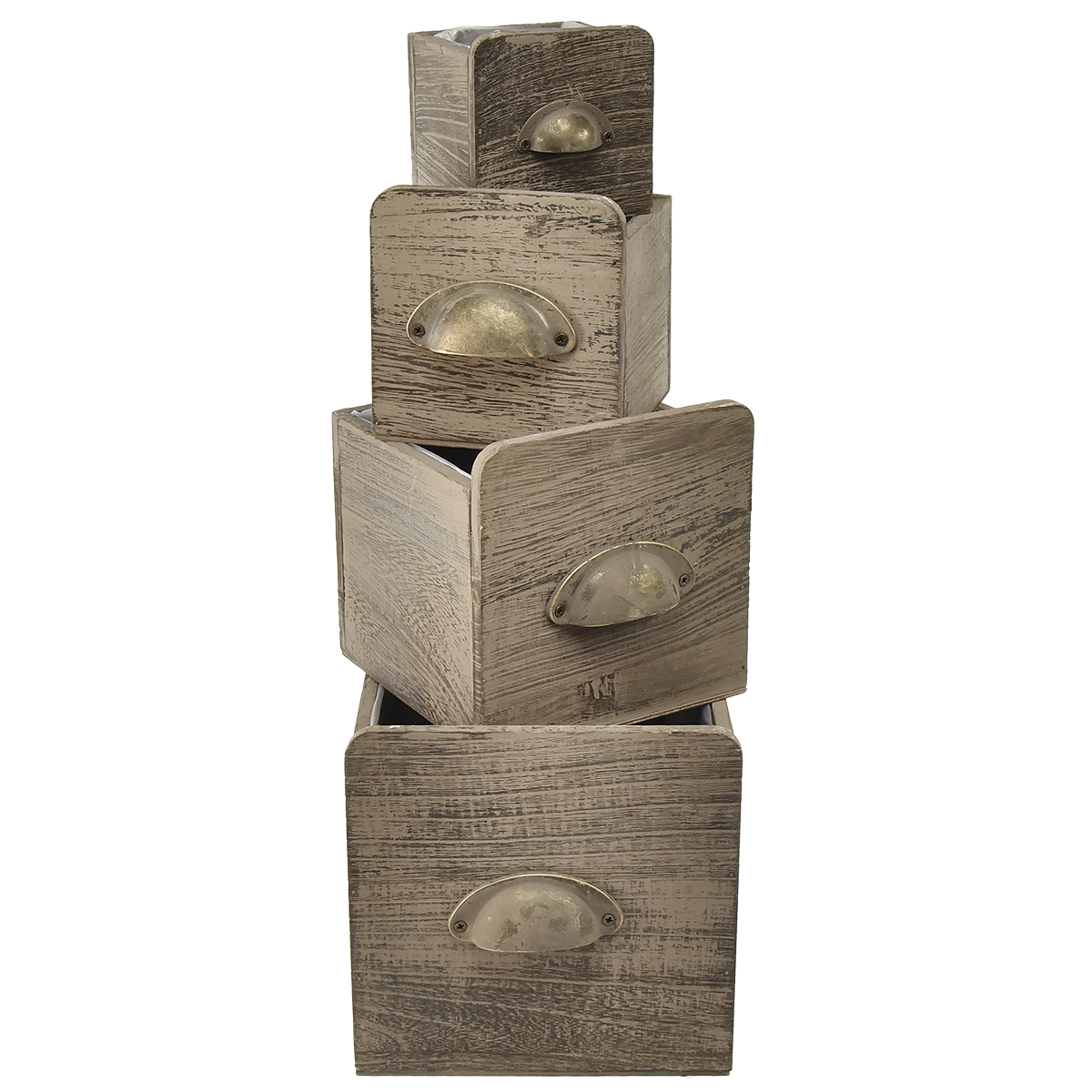 Nom du produit : Ensemble de tiroirs en bois avec poignée, marron essuyé - rangement rustique, ensemble de différentes tailles, 4 pièces