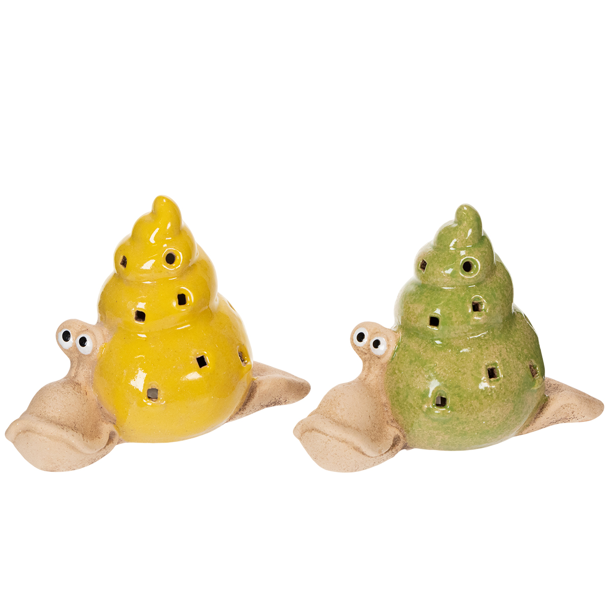 Escargot décoratif en céramique avec LED, 12 cm, lot de 2, idéal pour décorer une table à la maison ou au bureau.