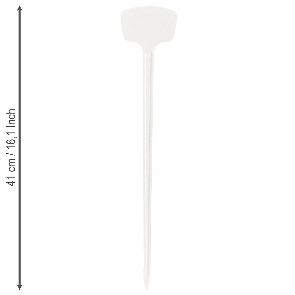 Notre étiquette marque-plantes a une longueur totale qui atteint près de 41 cm : la surface d’inscription mesure environ 80 x 50 mm et la longueur de la tige avoisine les 36 cm. Vous recevrez cette étiquette à planter en lot de 10 pièces. Les fleuristes ont aussi l’habitude d’utiliser ces piques à longues tiges pour l’étiquetage des prix : il suffit d’y apposer une étiquette de prix et d’insérer la pique dans le sceau ou le bac à fleurs correspondant !