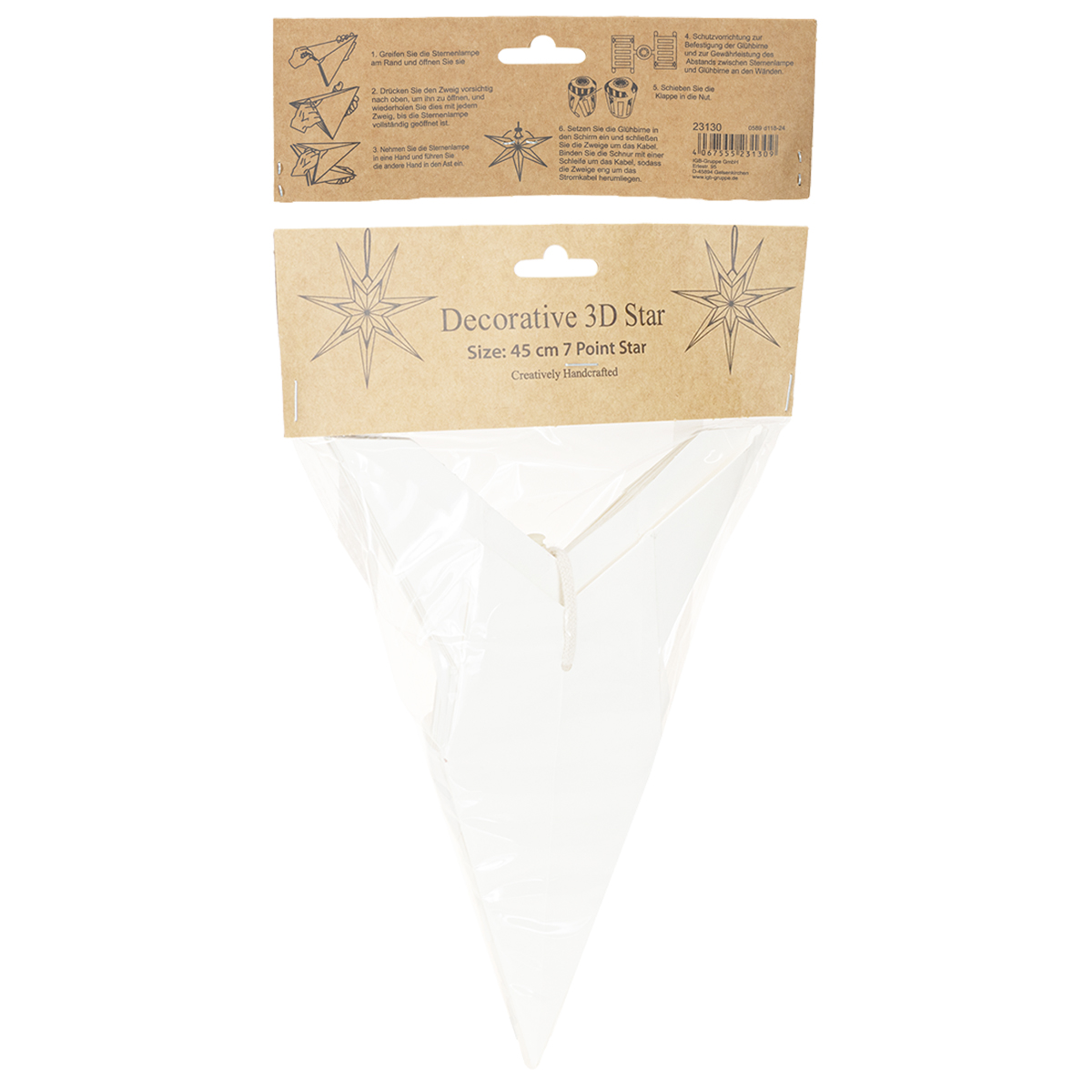 Ces étoiles de Noël blanc crème, confectionnées en papier de haute qualité, séduisent par leur design soigné et leurs détails pratiques : leur motif délicat allie simplicité et sophistication, avec une petite étoile émergeant de l’intérieur d’une plus grande. Il en résulte un effet unique et captivant qui s’intègre harmonieusement à toute décoration de Noël.