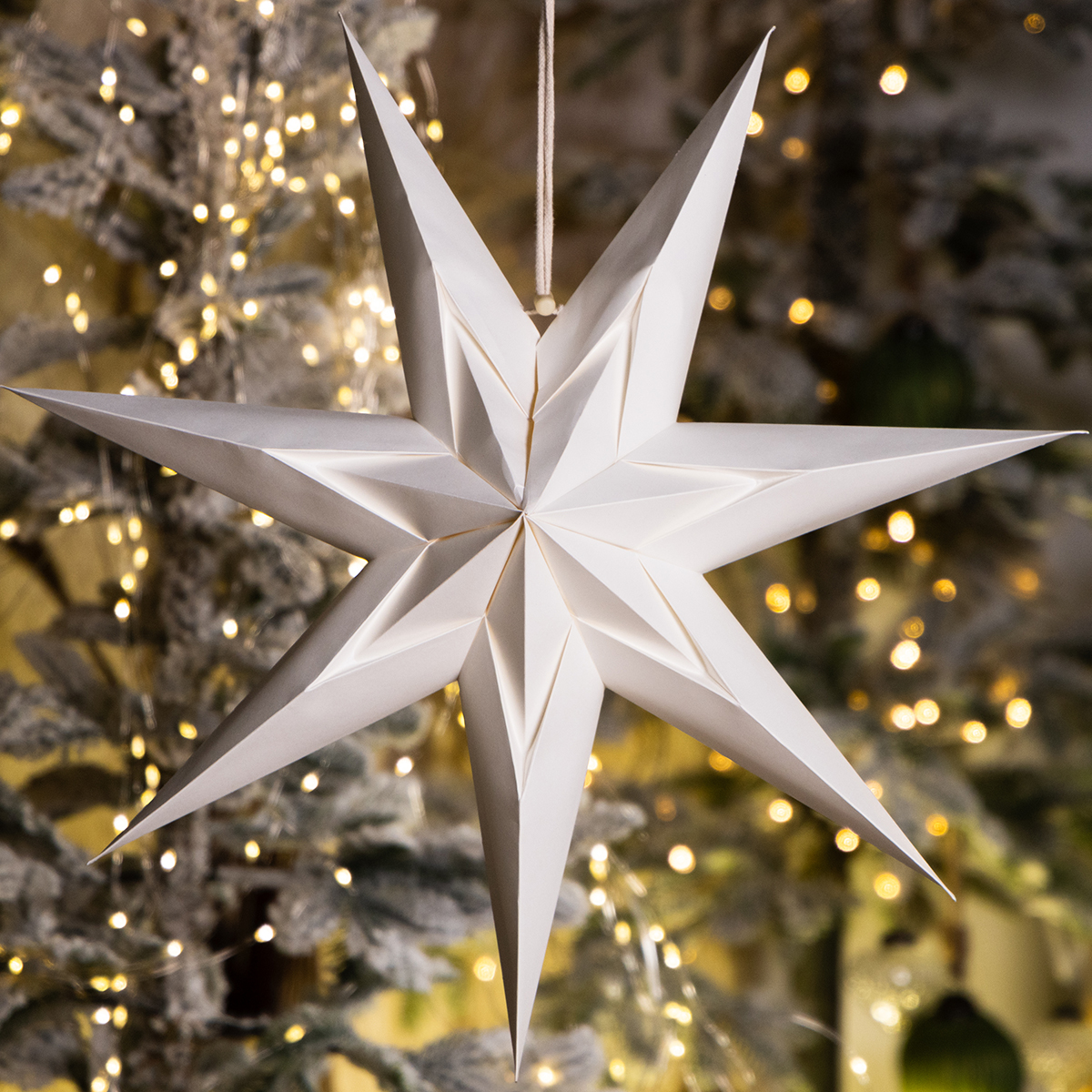 Étoiles en papier blanc crème – Décorations de Noël de style scandinave avec une touche d'originalité.