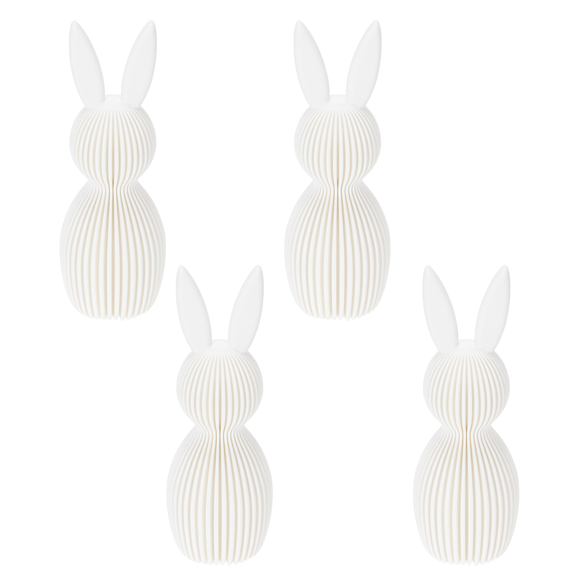 Envie d'une décoration de Pâques élégante et moderne ? Ces adorables lapins en figurine, d'un blanc éclatant, transformeront votre intérieur en un véritable havre de paix printanier. Avec leur design minimaliste et leur taille idéale de 11 cm, ils sont incroyablement polyvalents : charmants, discrets et faciles à utiliser. Sur le rebord de la fenêtre, la cheminée ou comme élément décoratif raffiné dans le salon, ces petits lapins décoratifs ne manqueront pas d'attirer tous les regards. Le lot de quatre figurines vous offre une multitude de possibilités pour les agencer selon vos envies. Sentez-vous déjà l'esprit des fêtes ?