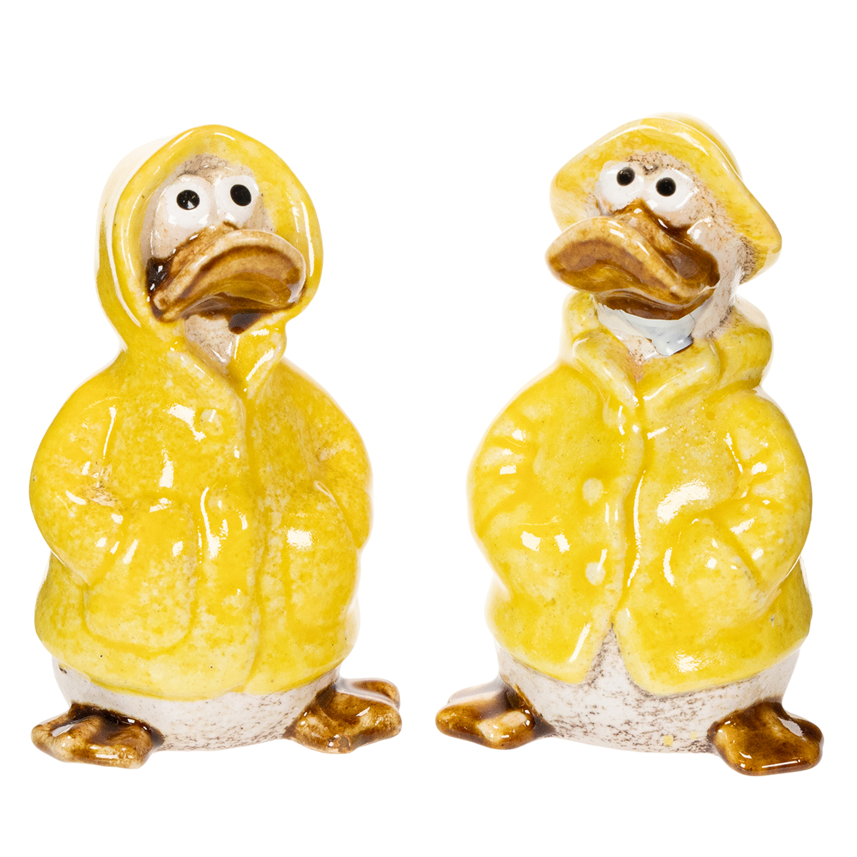 Figurines de canards en céramique vêtus d'imperméables jaunes – décorations amusantes pour le printemps et l'été