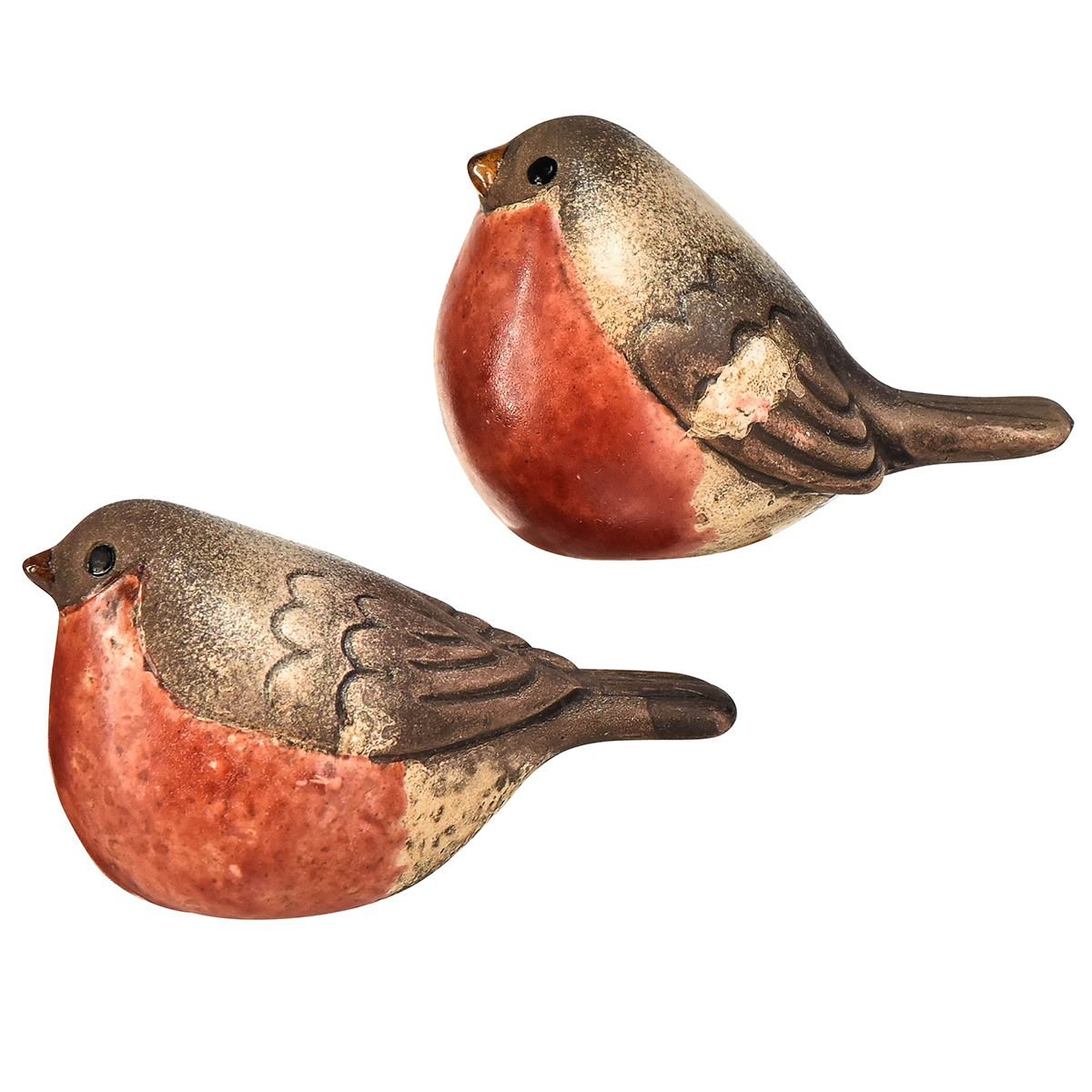 Figurines Robin en Céramique - Tons Rouges et Naturels, 5,4 cm - Parfaites pour le Jardin et la Maison - Pack de 4