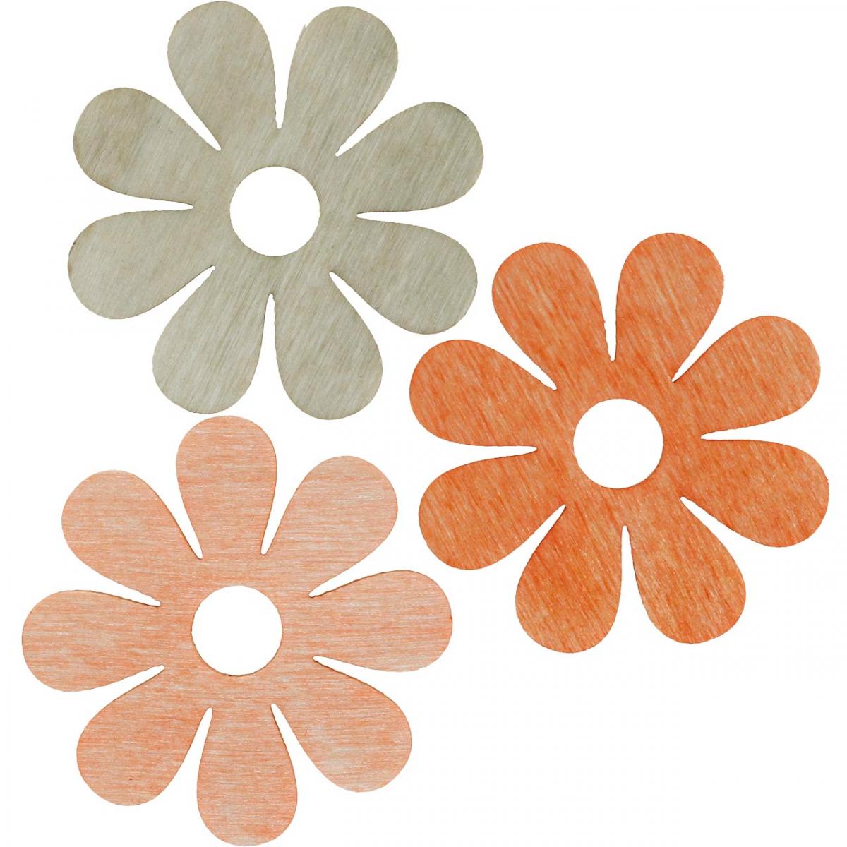 Fleurs à disperser orange, abricot, marron décoration bois dispersées 72 pcs