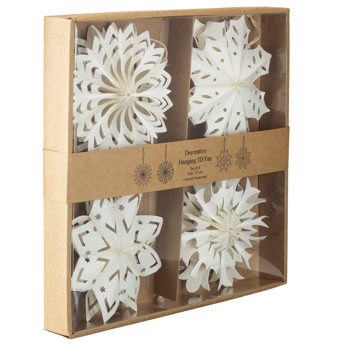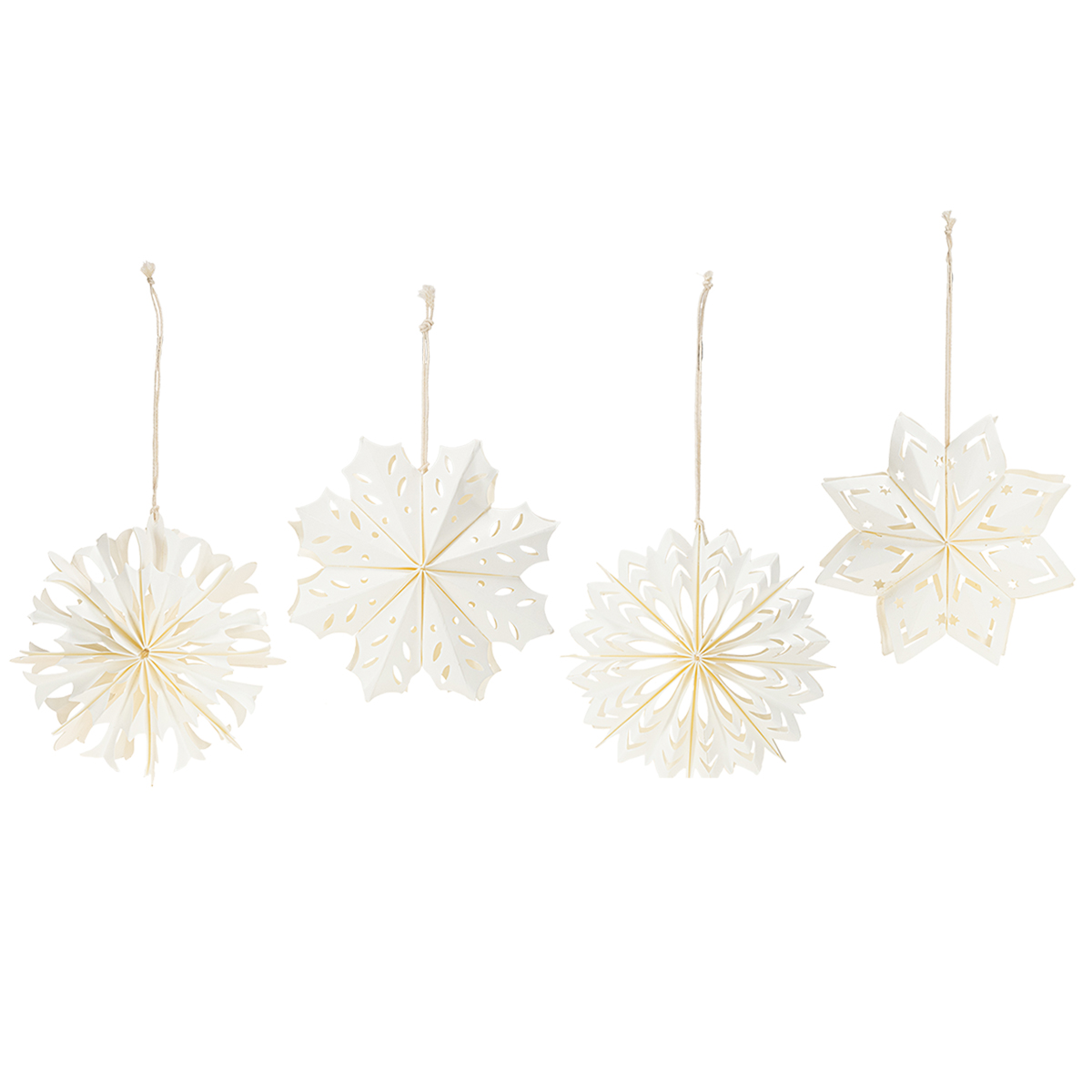 - 4 flocons de neige différents fabriqués en papier de haute qualité