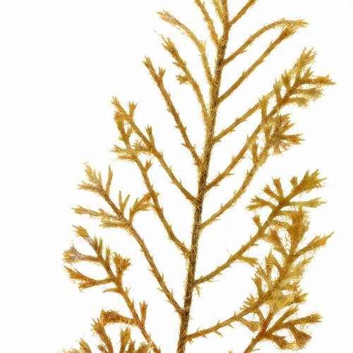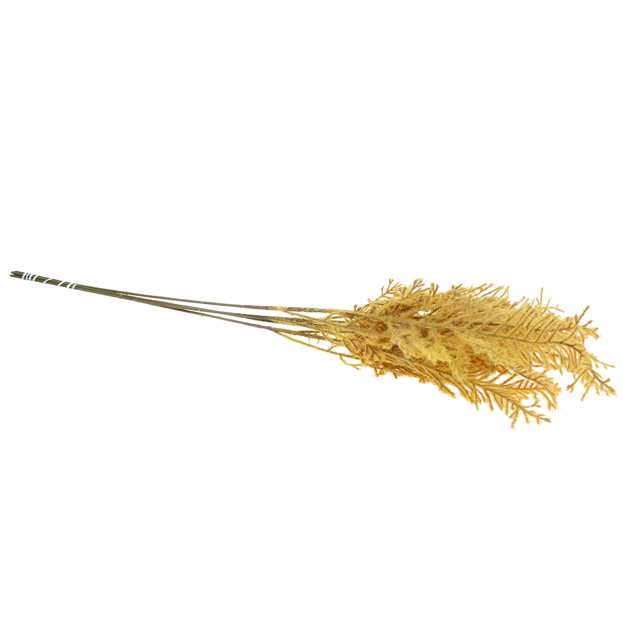 Une branche de fougère d'automne a trois branches de longueurs différentes. Les branches de couleur brune ont chacune une longueur d'environ 30,5 à 33 centimètres et sont recouvertes de fibres floquées jaune d'or, ce qui donne aux branches un aspect naturel et moelleux. Chaque feuille de branche avec ses nombreuses branches mesure environ 25 centimètres de long et environ 8 à 10 centimètres de large. Vous obtenez la fougère artificielle aux couleurs d'automne dans un ensemble de 4 pièces. Les branches individuelles sont en plastique et sont pourvues d'un fil métallique robuste et flexible dans la tige.