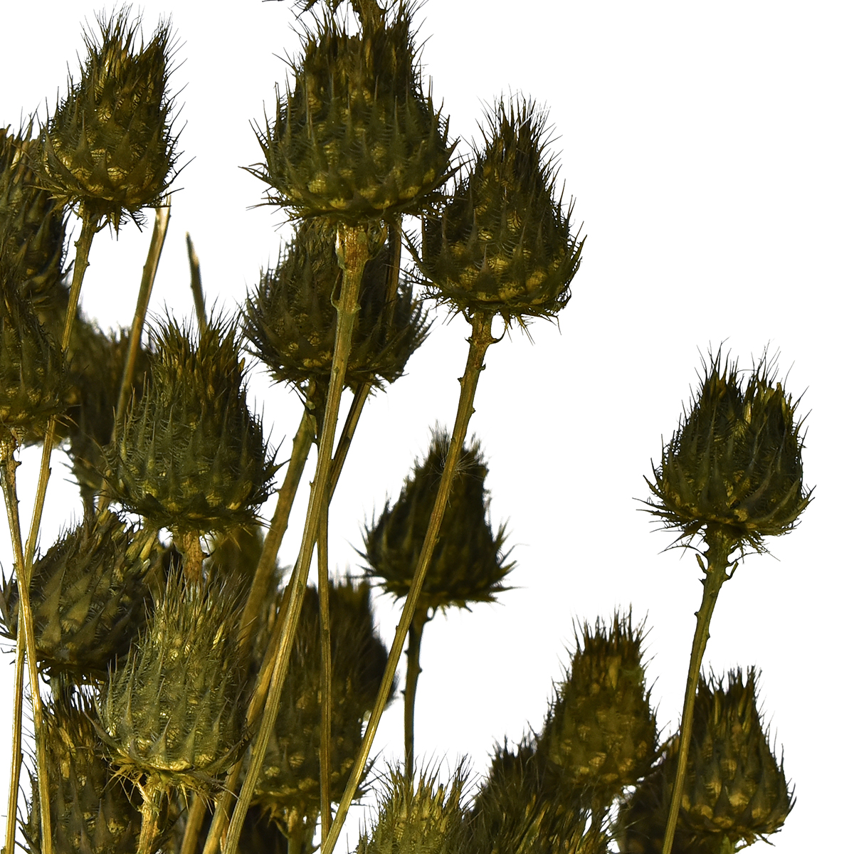 Concentrez-vous sur la durabilité et le respect de l'environnement avec nos véritables chardons fraises, parfaits pour des compositions créatives de fleurs séchées. Complétez votre décoration avec des chardons avec des accessoires d'intérieur assortis de style maison de campagne pour créer un ensemble harmonieux et créer une atmosphère chaleureuse.