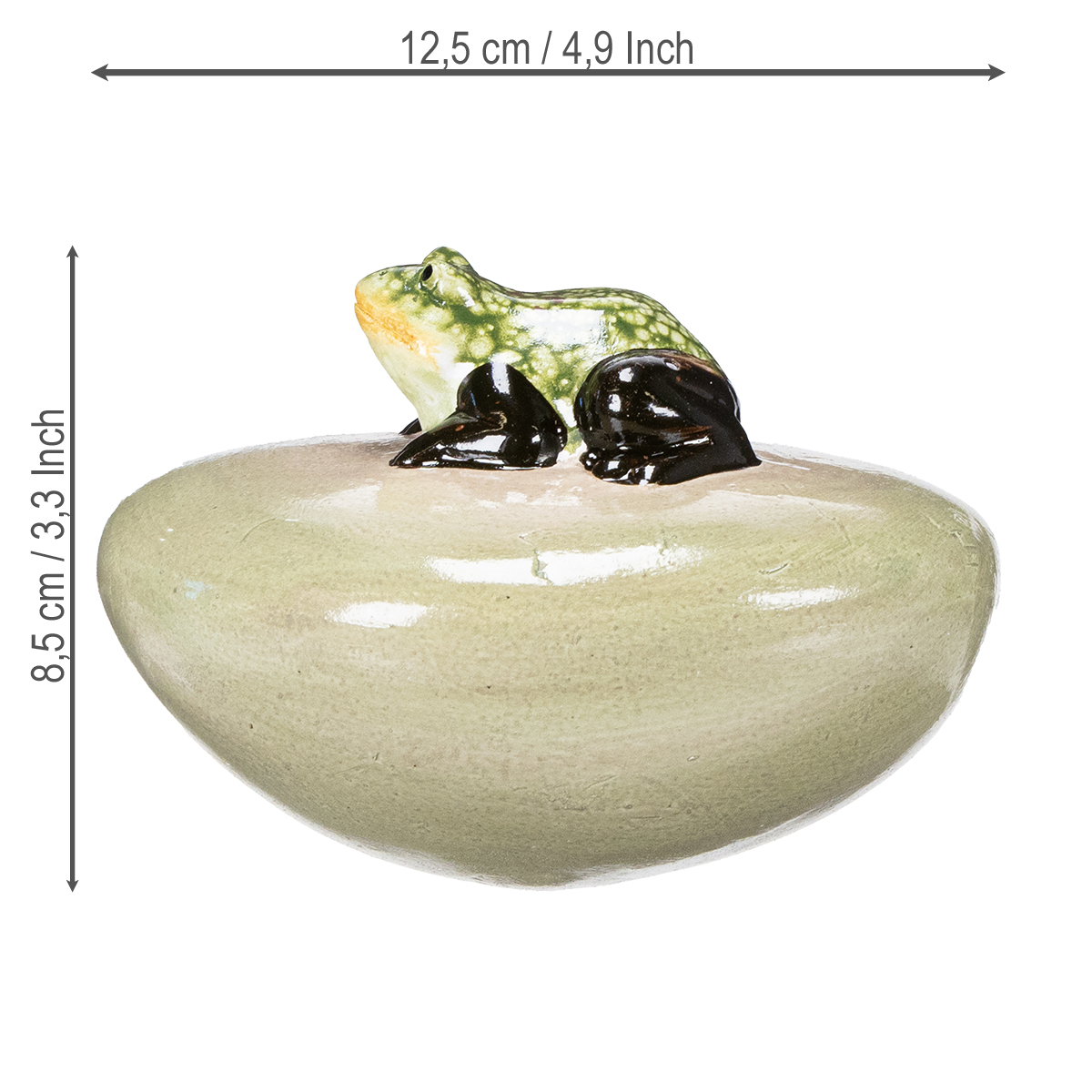 - Couleur : Vert naturel de la grenouille, beige de la pierre