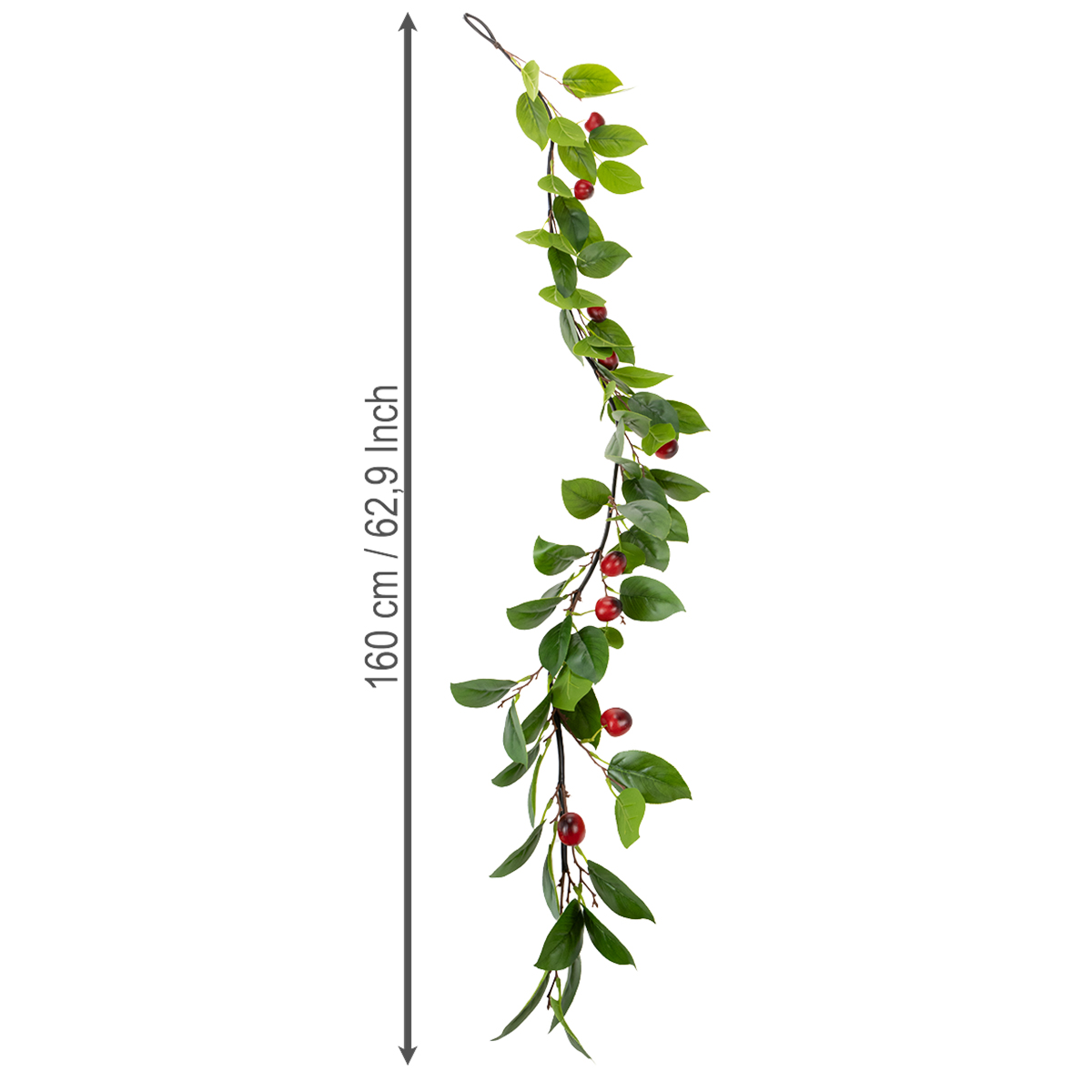 Guirlande artificielle de cerises. Idéale pour une décoration naturelle. Aspect floral. 160 cm.