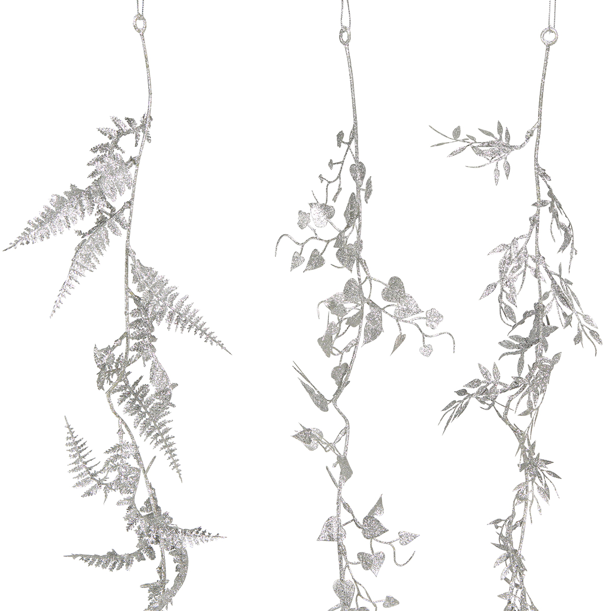 Nom du produit : Guirlande artificielle guirlande de feuilles de fougère à paillettes argentées 180cm 3 pcs