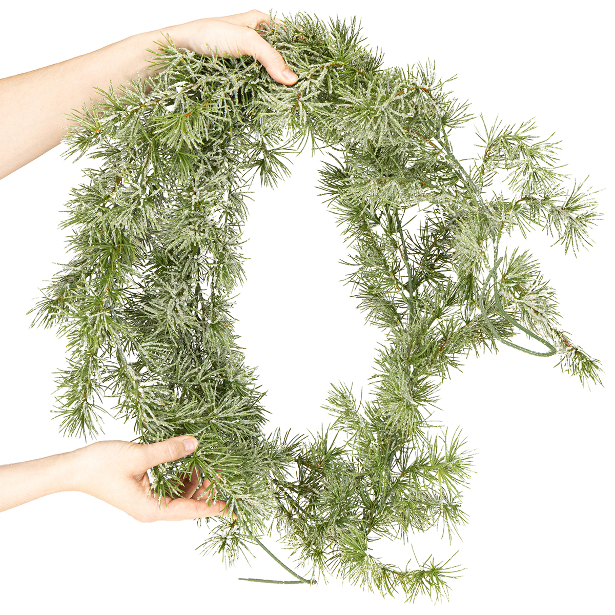 Cette guirlande décorative séduit par son réalisme : de délicates aiguilles de mélèze d'un vert profond, à l'aspect givré, lui confèrent un charme subtil. Qu'elle soit drapée avec élégance au-dessus d'une fenêtre ou utilisée pour sublimer une rampe d'escalier, cette guirlande embellit tous les espaces. Grâce à sa matière plastique robuste, elle est réutilisable pendant des années sans altérer sa qualité ni l'intensité de sa couleur. Pas de perte d'aiguilles, pas de dessèchement : cette guirlande de mélèze reste comme neuve. Elle est idéale pour ceux qui privilégient le respect de l'environnement et la praticité sans renoncer au charme naturel.
