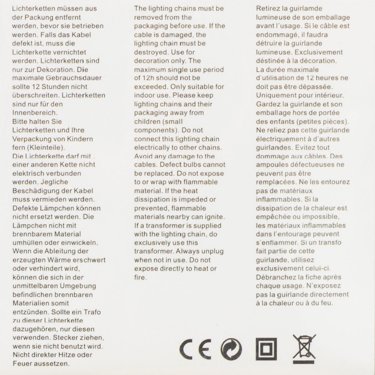 Guirlande lumineuse électrique : Recyclage électrique conformément à la réglementation locale.