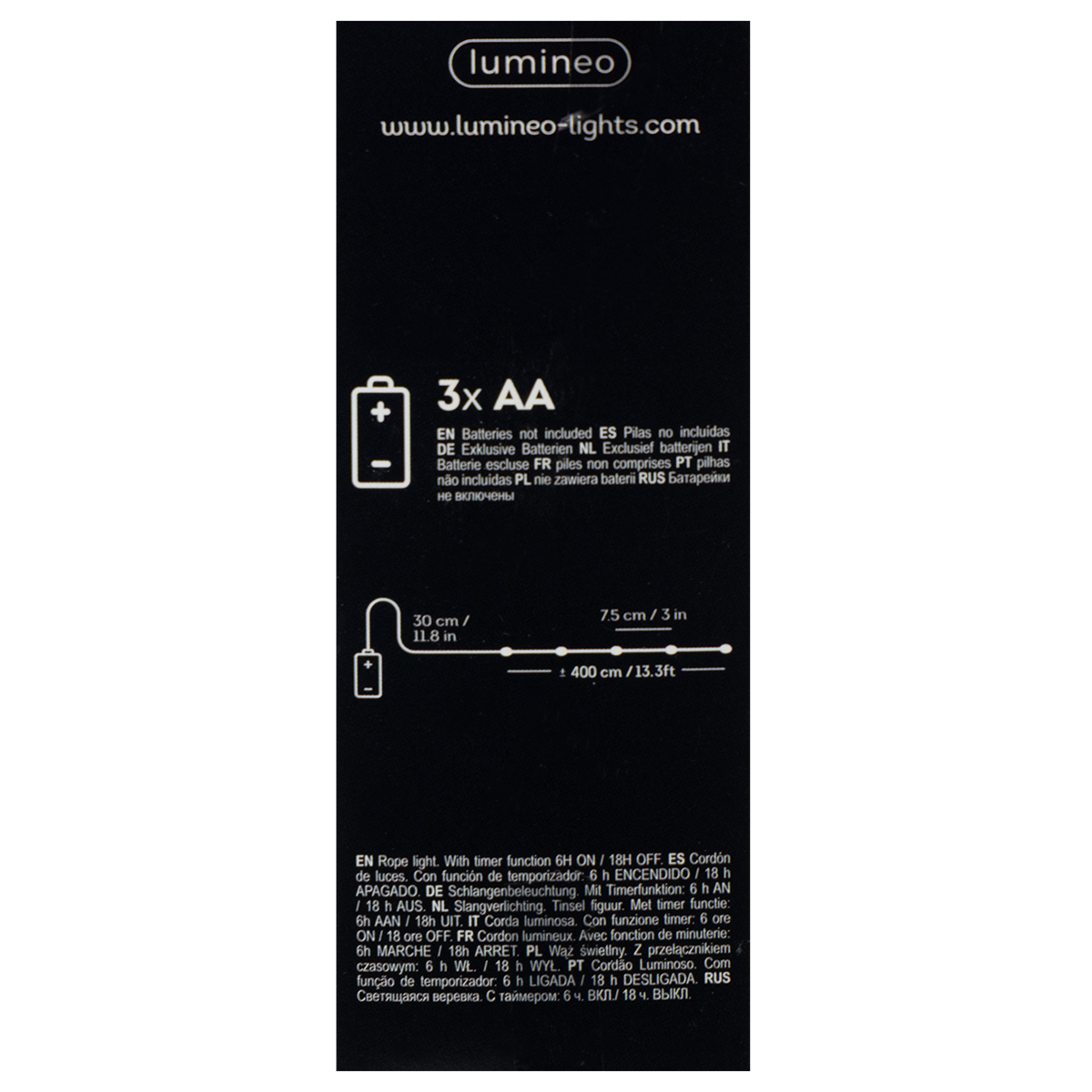 Quoi de plus beau que d'illuminer sa maison d'une lumière chaleureuse ? Notre guirlande lumineuse micro-LED avec cordon crée un effet magique dans chaque recoin de votre maison, sur une longueur totale de 390 cm ! En automne et en hiver, sa lumière blanc chaud crée une ambiance chaleureuse qui vous invite à vous sentir immédiatement chez vous. Vous cherchez un éclairage original pour illuminer l'encadrement de votre fenêtre ? Ou souhaitez-vous mettre en valeur vos décorations de sapin ? Les délicates LED blanc chaud de cette guirlande lumineuse diffusent une lumière douce et chaleureuse dans chaque pièce.