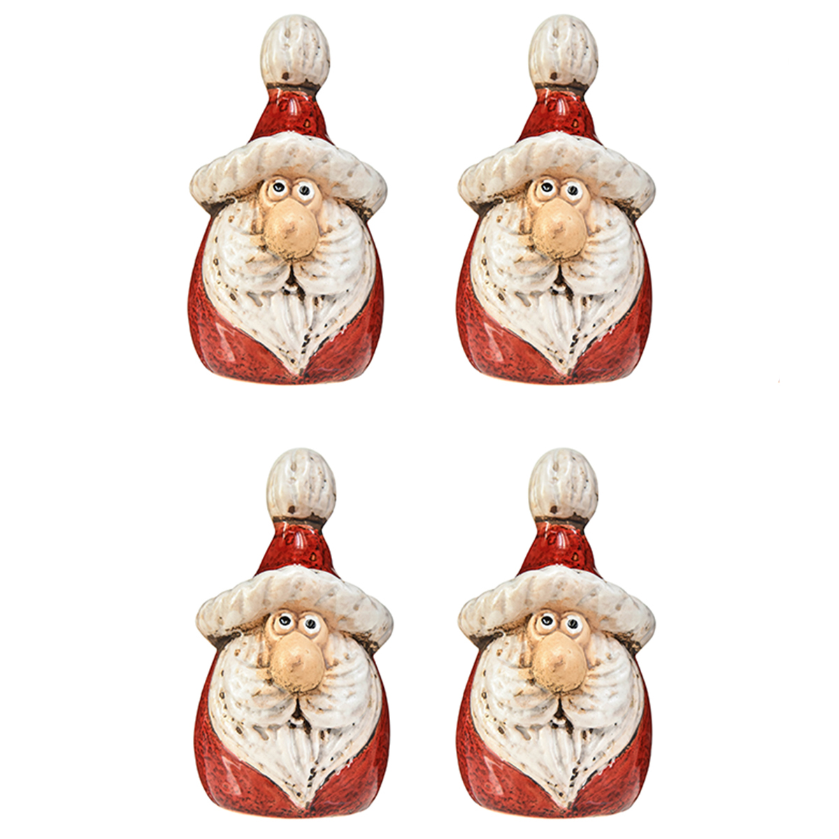 Jolie figurine de Père Noël en céramique, rouge et blanc, 10 cm - décoration de Noël parfaite - 4 pièces