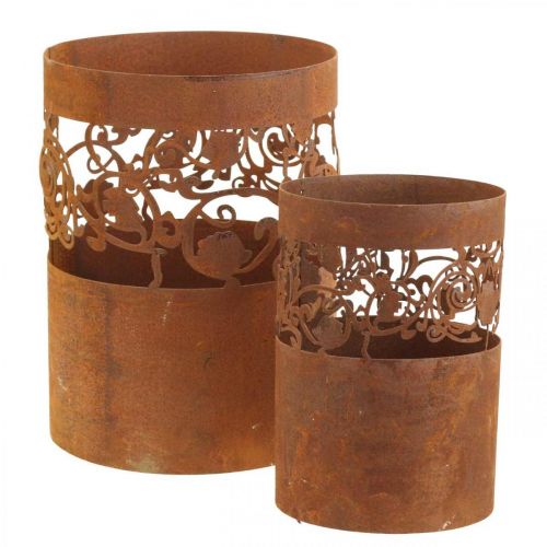 Lanterne bougeoir métal patiné Ø10/14,5cm lot de 2