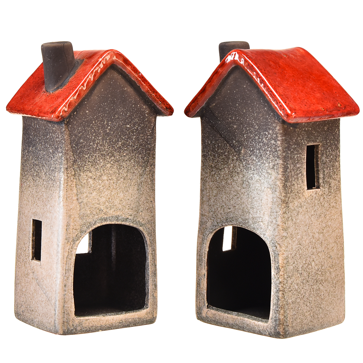 Lanterne de maison en céramique avec toit rouge et fenêtre coeur - 17,5 cm 2 pcs