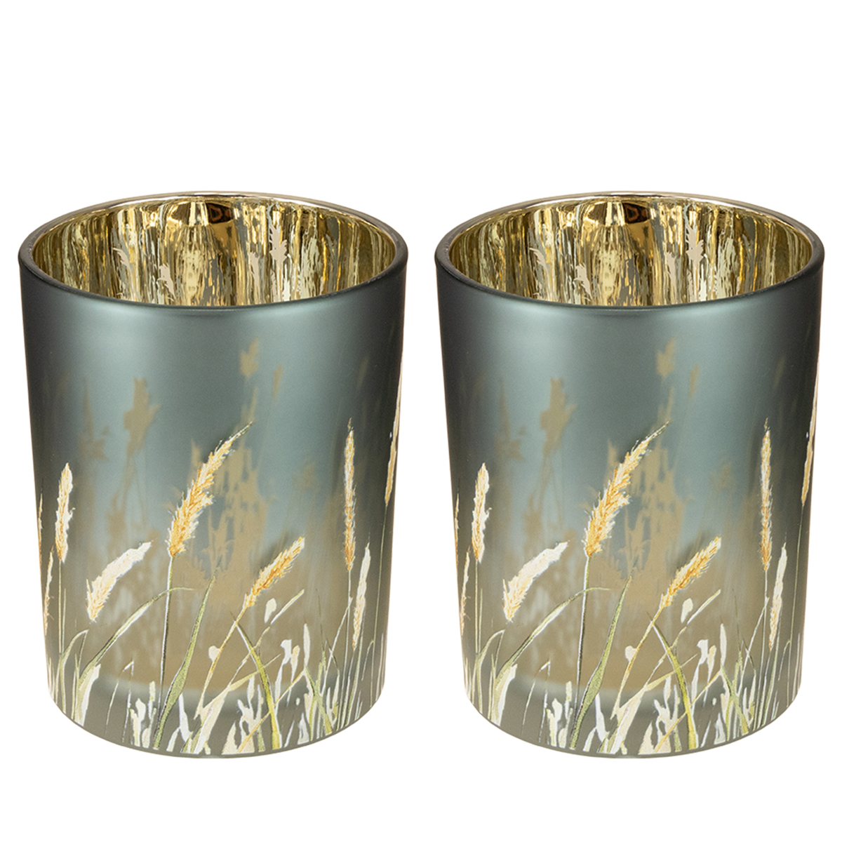Lanterne décorative élégante à motif d'herbe pour une touche chaleureuse dans votre intérieur, 12,5 cm, lot de 2.