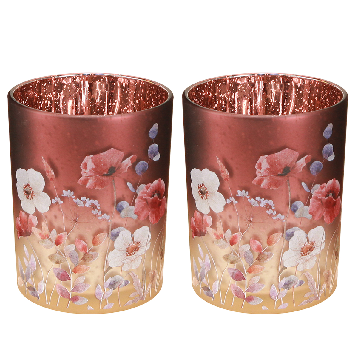 Lanterne décorative en verre à motif floral pour une touche d'élégance dans votre intérieur, 12,5 cm, lot de 2