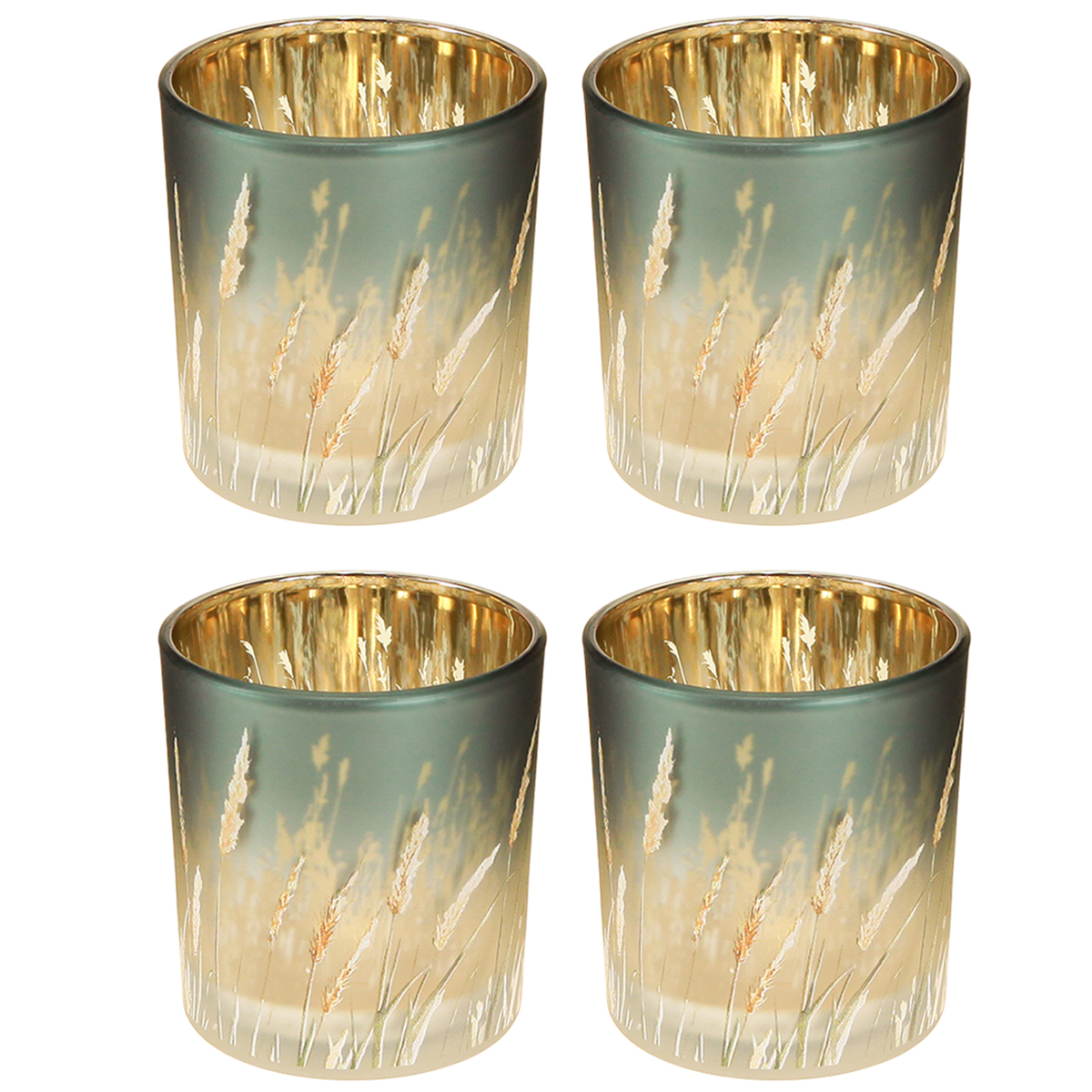 Lanterne décorative en verre avec motif d'herbe pour une ambiance chaleureuse, bleue, 8 cm, lot de 4.