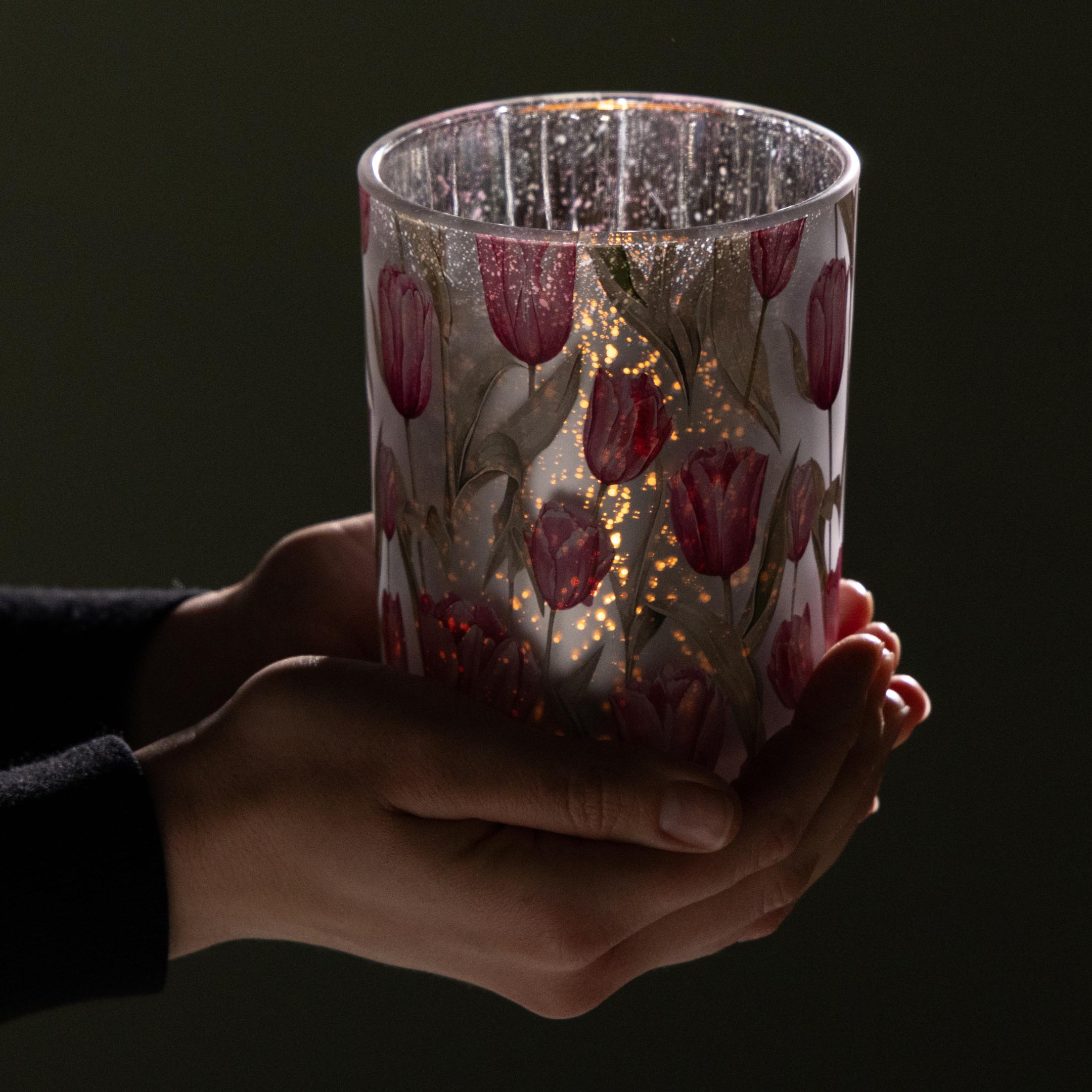 Lanterne élégante à motif de tulipe pour une décoration printanière d'ambiance, 12,5 cm, 2 pièces.