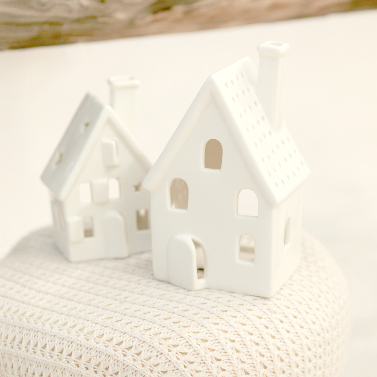 Nom du produit : Lanterne maison décoration de table en céramique Avent blanc H18cm