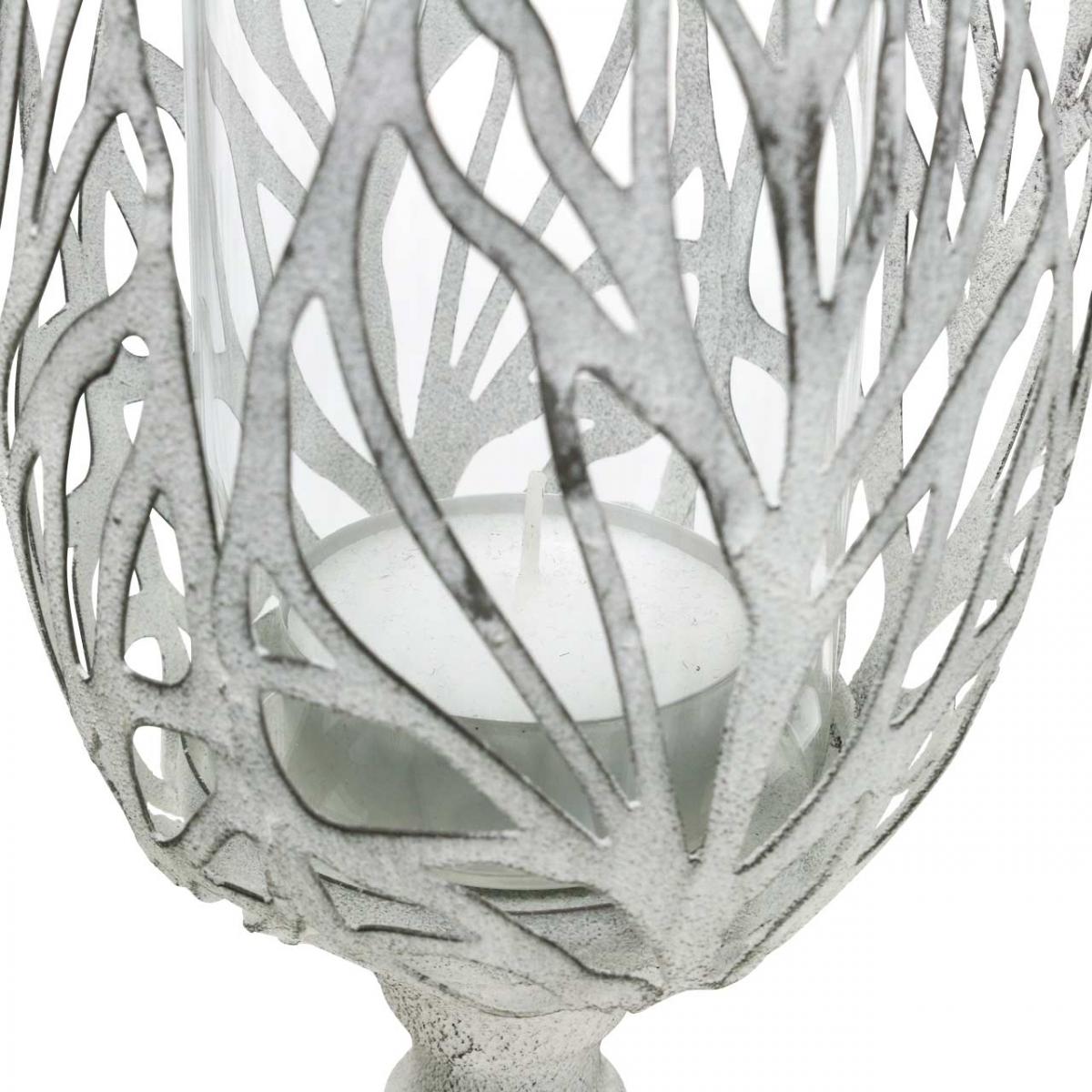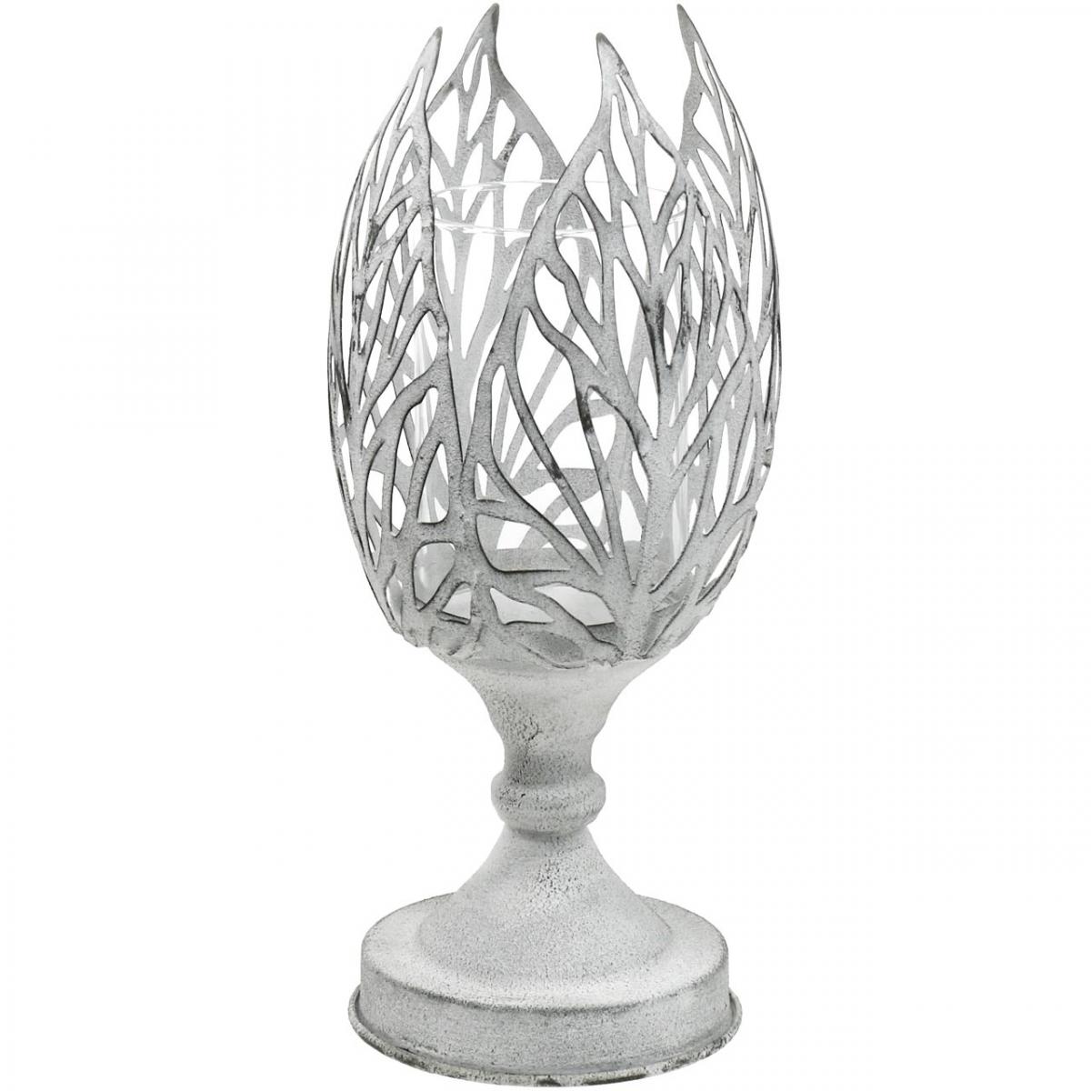 Lanterne métal blanc, photophore fleur Ø13cm H30cm