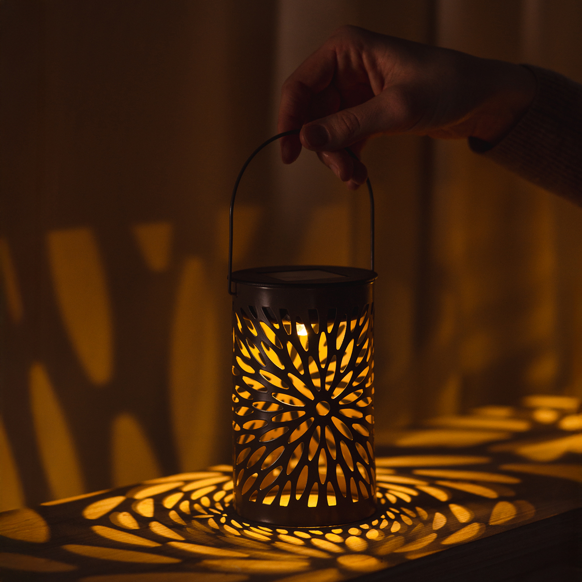 Les douces soirées d'été au jardin, sur la terrasse ou le balcon – quoi de mieux ? Avec notre ensemble pratique de trois lanternes solaires, créez une ambiance unique dans n'importe quel espace extérieur. Leurs motifs délicats projettent des ombres captivantes, sublimant vos moments de convivialité ou vos garden-parties. Le plus ? Tout cela est possible de manière durable grâce à l'énergie solaire des LED. Le jour, elles se rechargent à la lumière du soleil et, le soir venu, diffusent une douce lumière blanche, sans changement de piles ni consommation d'énergie supplémentaire. Idéal pour les amoureux du style et de l'écologie. Suspendues ou posées au sol, leurs élégantes teintes or clair, marron et vert s'harmonisent parfaitement avec les plantes vertes, le mobilier de jardin moderne ou les compositions florales. Un véritable atout pour votre extérieur !