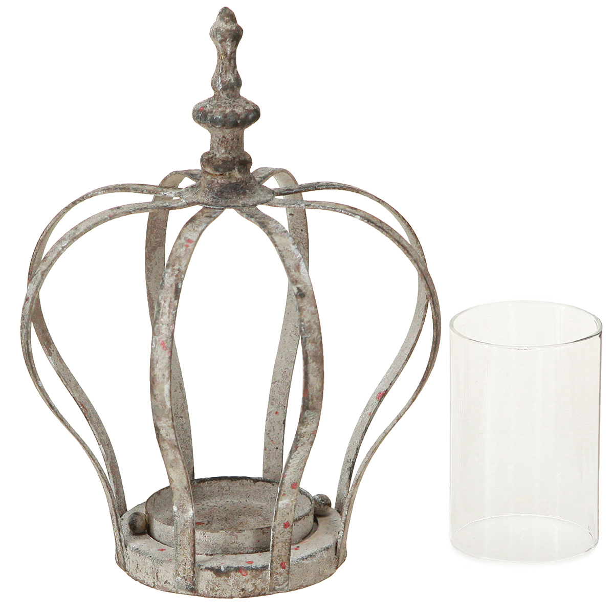 Lanterne Vintage Couronne Métal avec Verre Gris Ø14cm H18.5cm