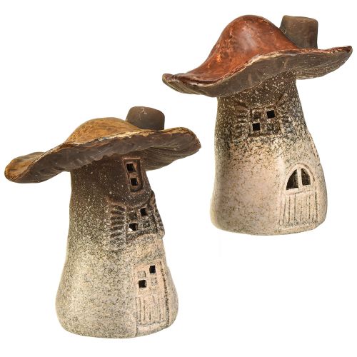 Lanternes Magiques Maison Champignon - Céramique Rustique, Marron, 14,5 cm - Décoration Lumineuse Unique Pack de 2