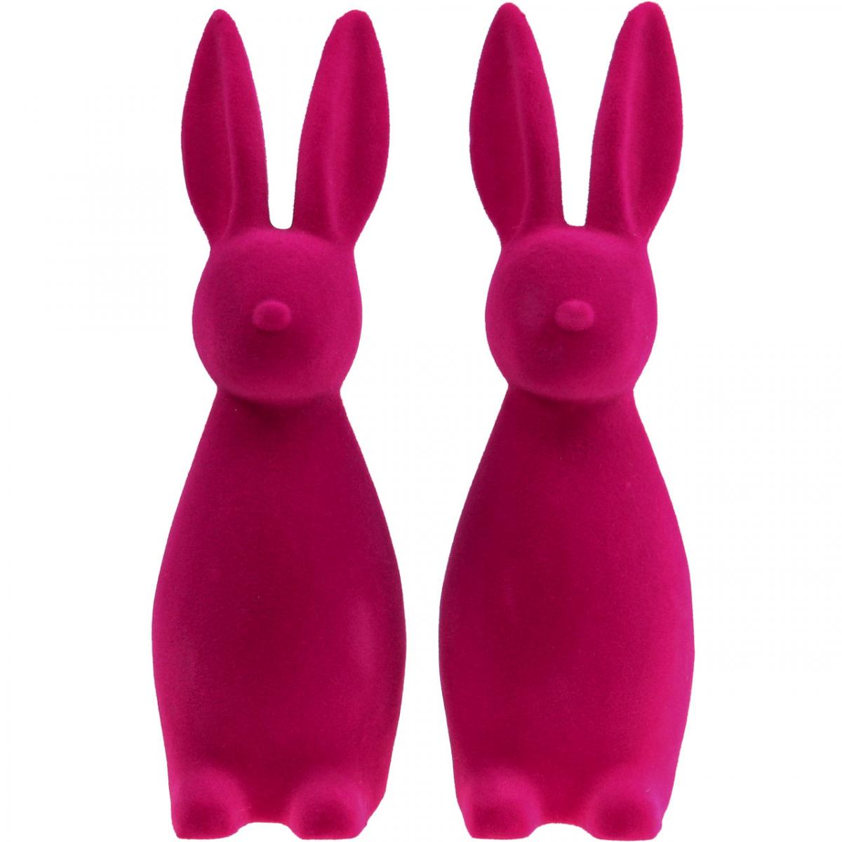 Lapin de Pâques décoratif, rose floqué, 29,5 cm de haut, lot de 2