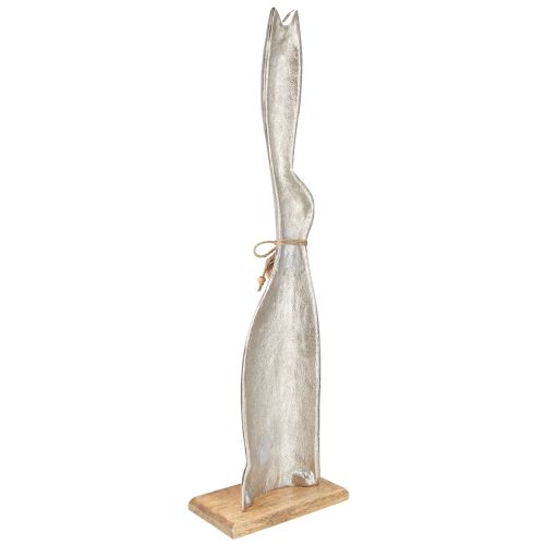Lapin décoratif argenté sur socle en bois – Elégante figurine de Pâques avec pendentif coeur H60cm