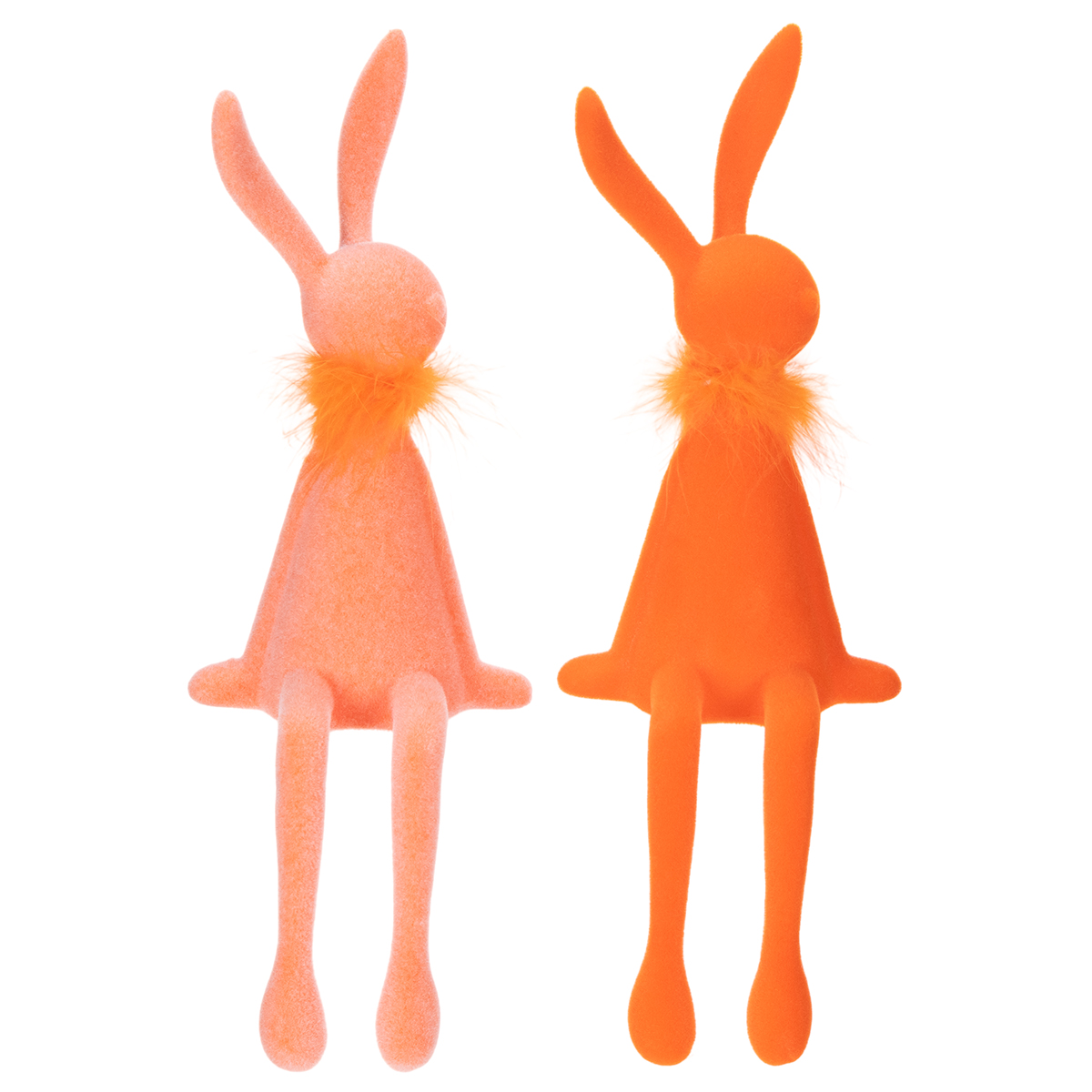 Le printemps est à nos portes ! C’est enfin le moment de sortir les jolies décorations de Pâques ! Et si vous optiez pour une décoration charmante, à la fois pratique et esthétique ? Nos lapins de Pâques à poser sur une étagère, dans des tons saumon et orange vif, apporteront une touche unique à votre décoration pascale. Du haut de leurs 36 cm, ils ne passeront pas inaperçus, et leur flocage velouté leur confère une élégance incomparable. Sur une commode, un rebord de fenêtre ou une étagère, ces lapins de Pâques insuffleront une note ludique et printanière à votre salon. Leurs couleurs harmonieuses créeront une ambiance chaleureuse et accueillante. Un petit conseil : associez-les à des fleurs printanières aux tons pastel ou à un socle en bois – un effet charmant garanti !