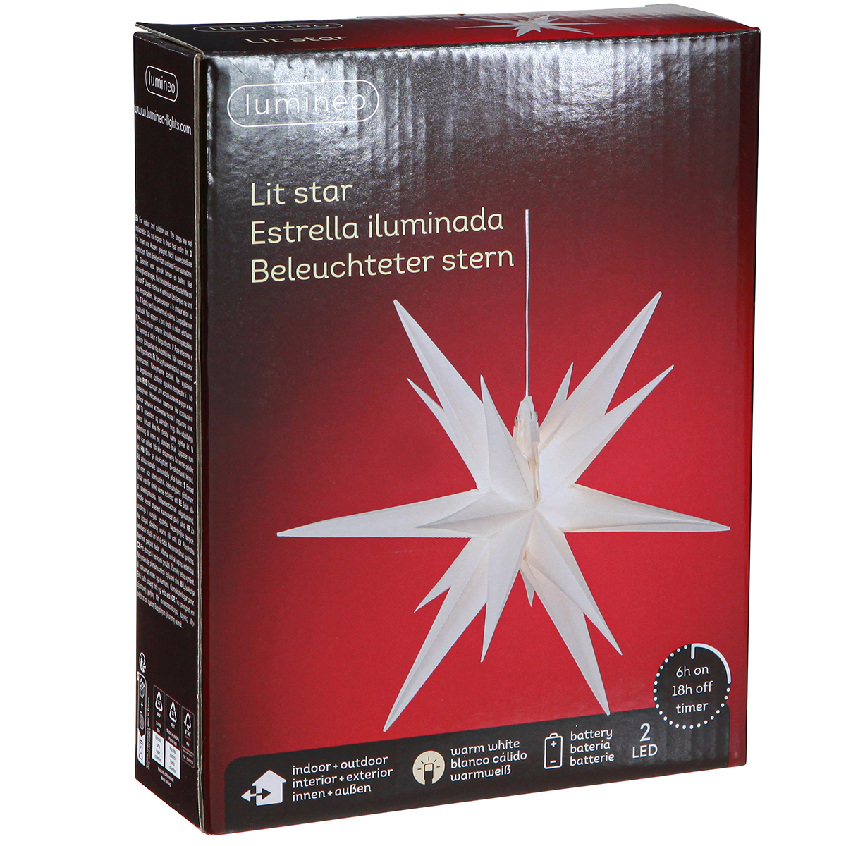 Découvrez la variété d'utilisations possibles avec notre poinsettia LED pliable. L'indice de protection IP44 signifie que le compartiment à piles est, entre autres, protégé contre les éclaboussures. Cela rend le poinsettia idéal pour l’éclairage extérieur. Sa fabrication de haute qualité en plastique robuste garantit longévité et résistance aux intempéries. L'étoile LED fonctionnant sur batterie, d'un diamètre d'environ 30 cm et d'une longueur de dents d'environ 14 cm, est facile à monter et à démonter et offre un confort supplémentaire grâce à une minuterie (6 heures d'allumage, 18 heures d'arrêt).