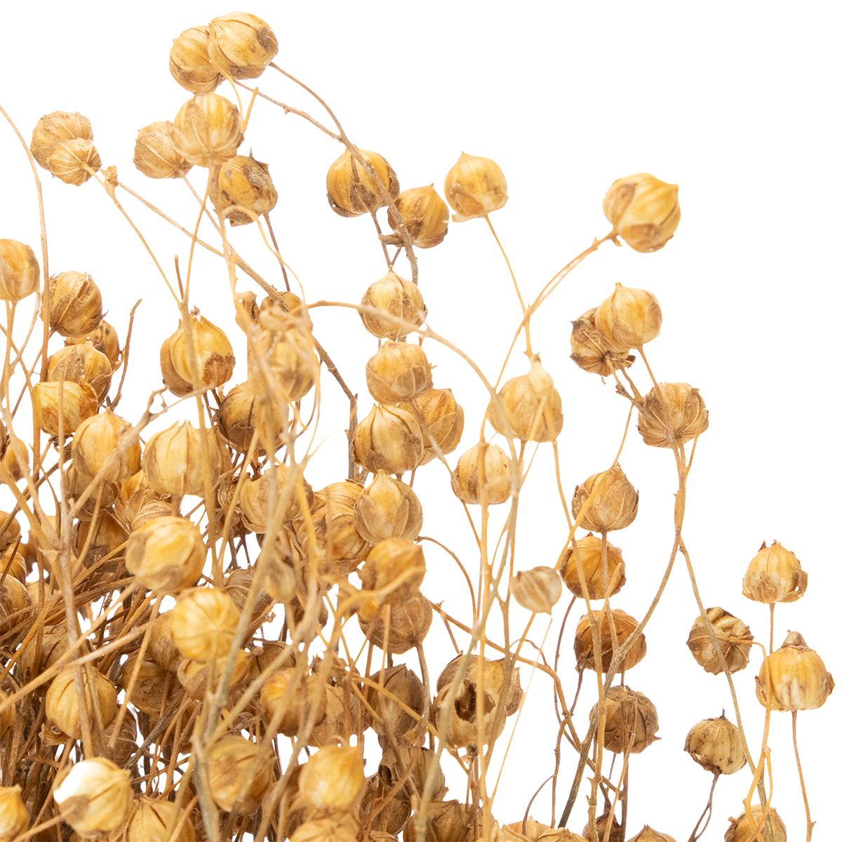 Les nombreuses petites capsules rondes de graines de lin sont extrêmement décoratives à l'état naturel, faisant du lin un élément décoratif prisé dans les compositions de fleurs séchées tout au long de l'année ! Le lin séché est un indispensable en art floral et peut être intégré de diverses manières dans les bouquets de fleurs séchées, les couronnes naturelles et les anneaux décoratifs, dans le style scandinave très en vogue.