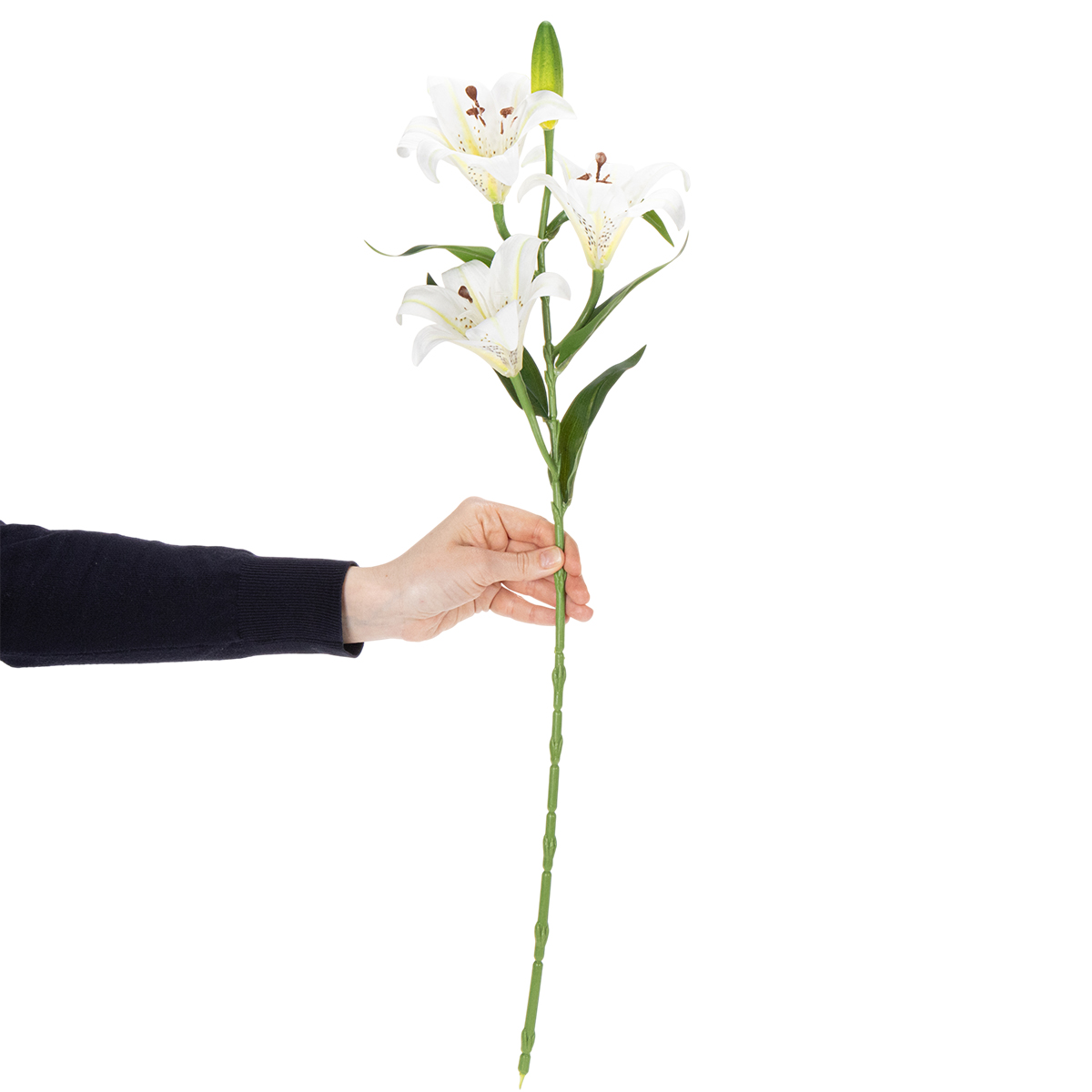 Ces lys artificiels de haute qualité séduisent par leur réalisme et leur charme discret. Parfaits pour sublimer un salon minimaliste, ils s'intègrent également à merveille dans une ambiance champêtre romantique. D'une hauteur de 66 cm, ces fleurs se prêtent aussi bien aux vases qu'aux compositions florales plus imposantes. Leur matière, le polyester et le plastique, leur confère un aspect naturel et un toucher agréable.