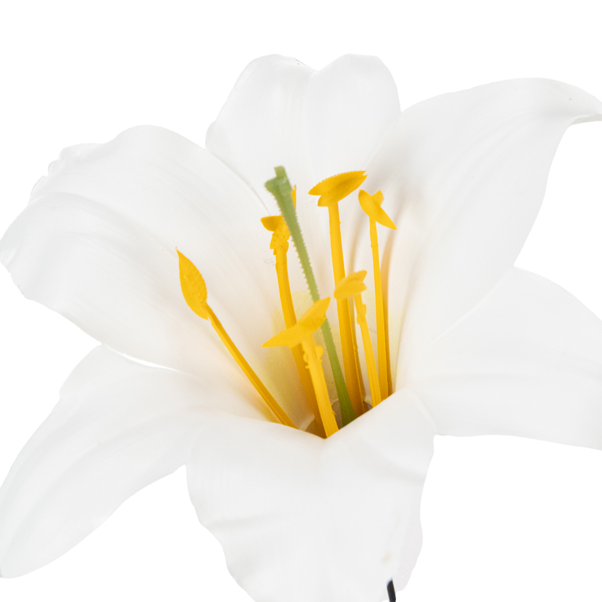 Fabriquée en synthétique de grande qualité, cette gracieuse fleur pour arrangements de deuil résiste aux intempéries. La tête de ce lis décoratif est reliée à un fil à tiger qui vous permettra d’insérer sans effort la fleur artificielle dans une gerbe ou une composition funéraire. Vous obtiendrez ainsi une décoration digne et élégante pour orner une tombe pour la Toussaint ou le jour des morts.