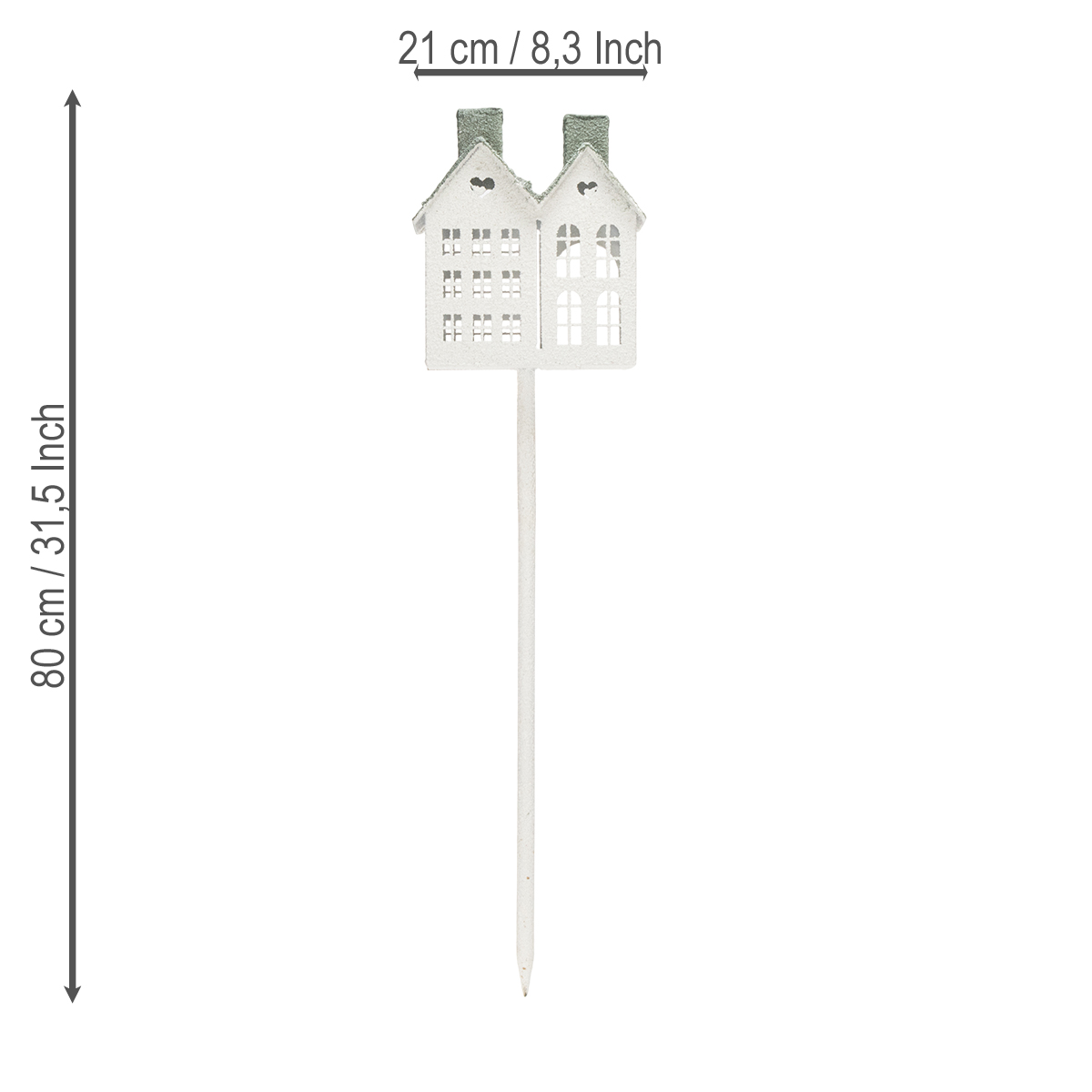 D'une hauteur de 80 cm, cette maison sur piquet attire tous les regards et se prête aussi bien à une décoration de balcon qu'à une parure de jardin pour Noël. Décorez les allées, égayez un coin cosy ou mettez simplement en valeur vos compositions végétales. Une simple bougie chauffe-plat suffit à illuminer la maison de l'intérieur, créant une ambiance chaleureuse et relaxante. Laissez libre cours à votre imagination et créez un élément décoratif élégant qui ne manquera pas d'impressionner vos proches !