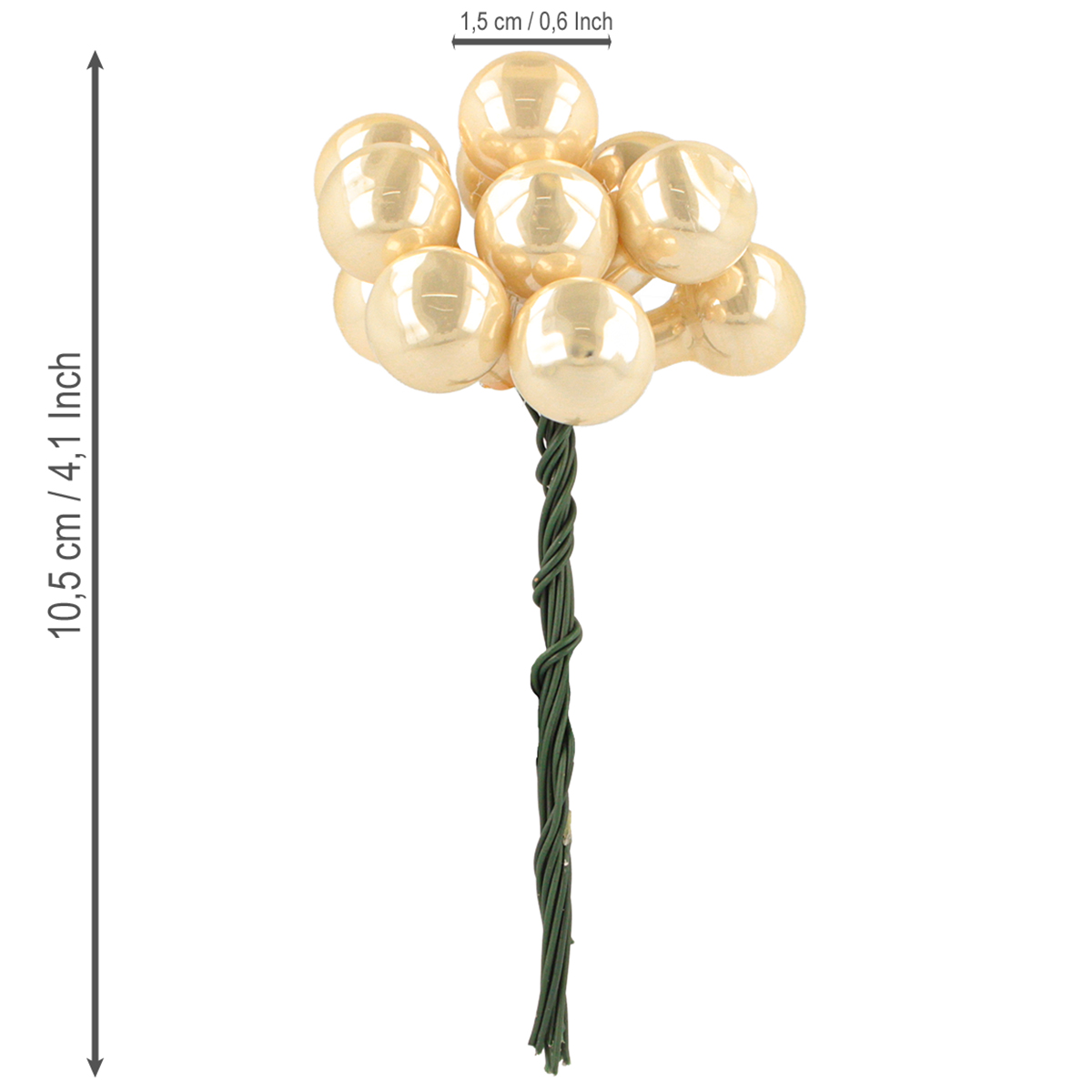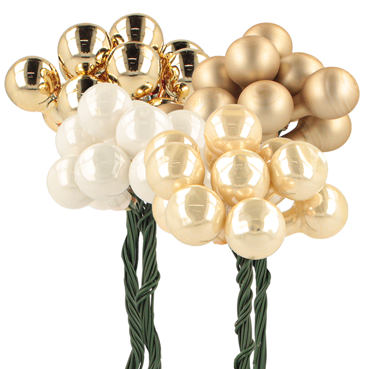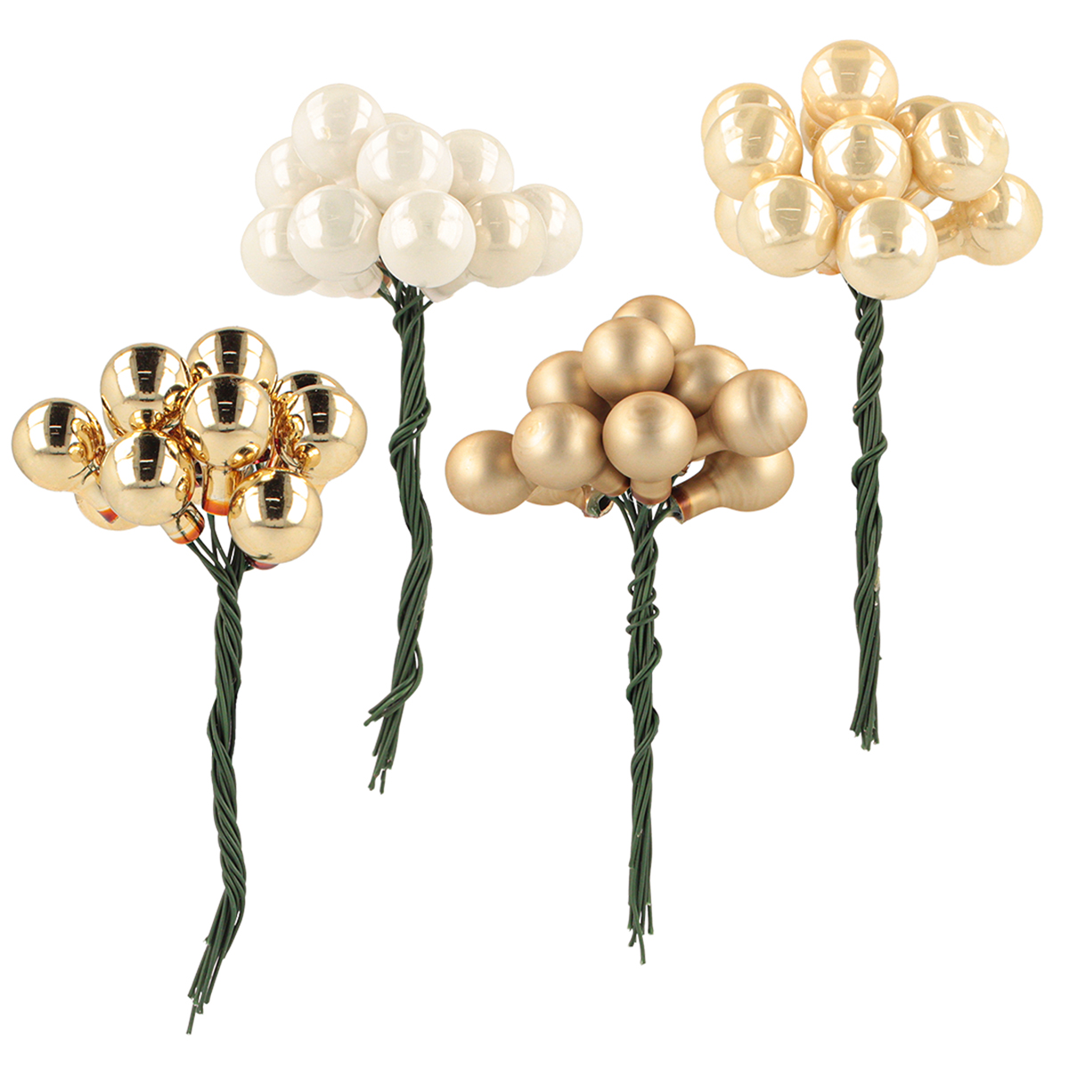 Mini boules de Noël sur fil or, crème Ø1,5cm 140 pcs