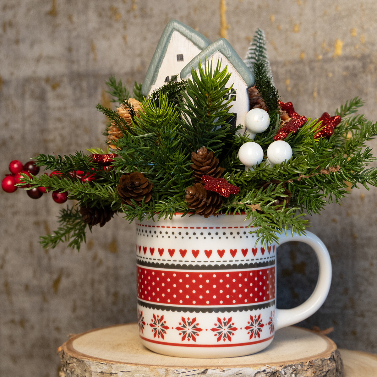 - Décoration DIY : Remplissez la tasse de branches de sapin et de bâtons de cannelle