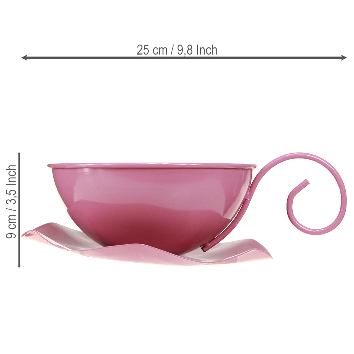 Mug en métal Ø16 cm H9 cm, mug décoratif avec soucoupe, rose, lot de 2