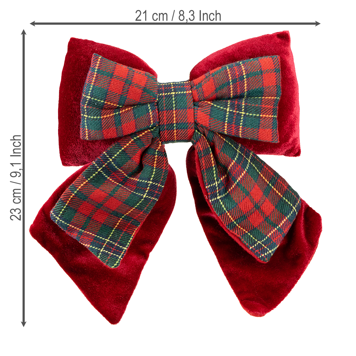 Nœud en velours écossais rouge pour intérieur 21 × 23 cm